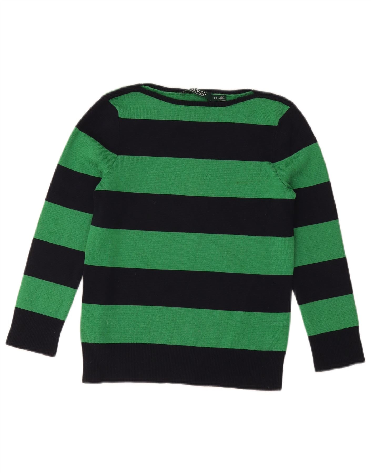 RALPH LAUREN Dame Boat Neck sweater UK 6 XS Grøn Stribet Bomuld