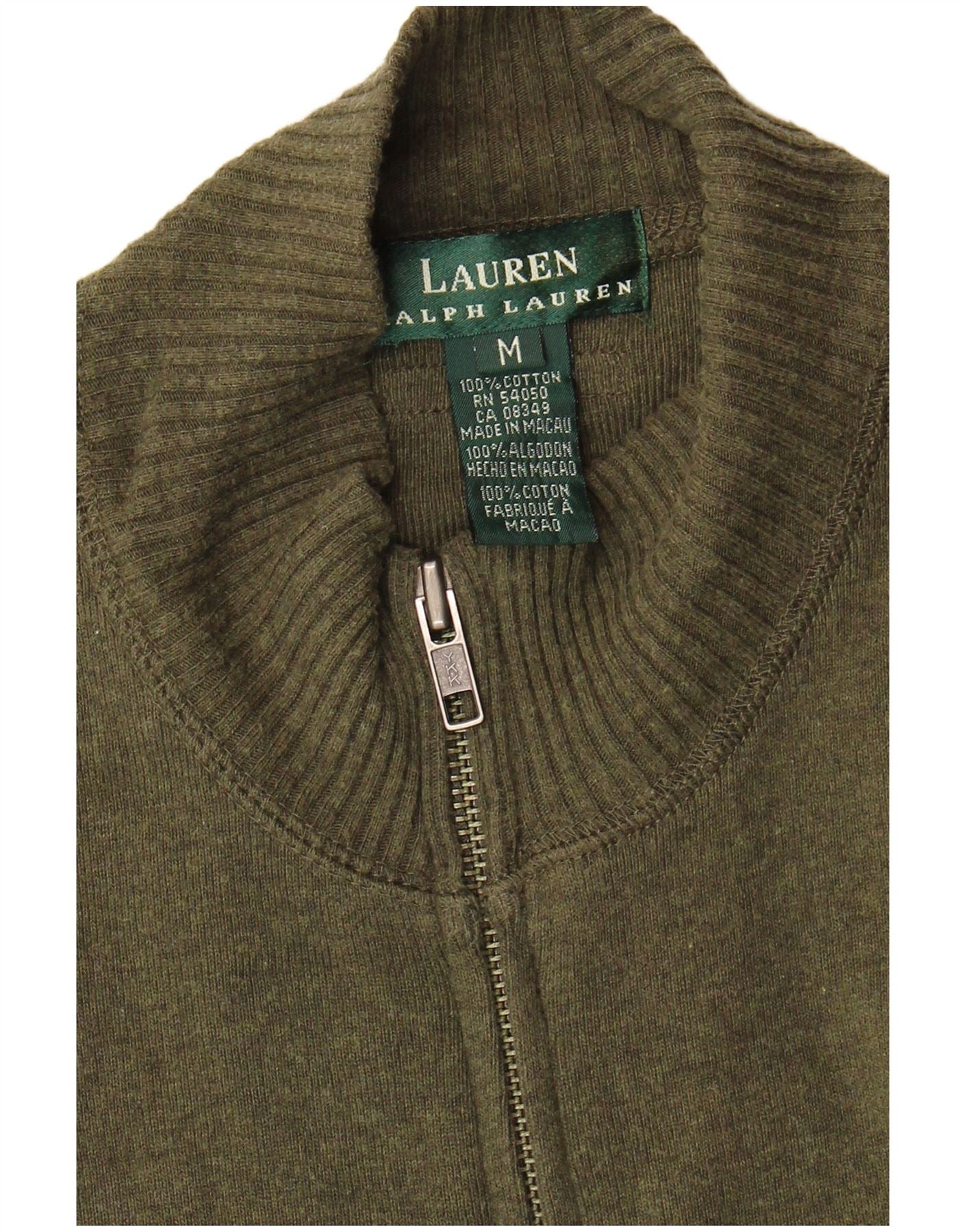 Ralph Lauren Dame Cardigan Sweater UK 14 Medium Khaki Bomuld