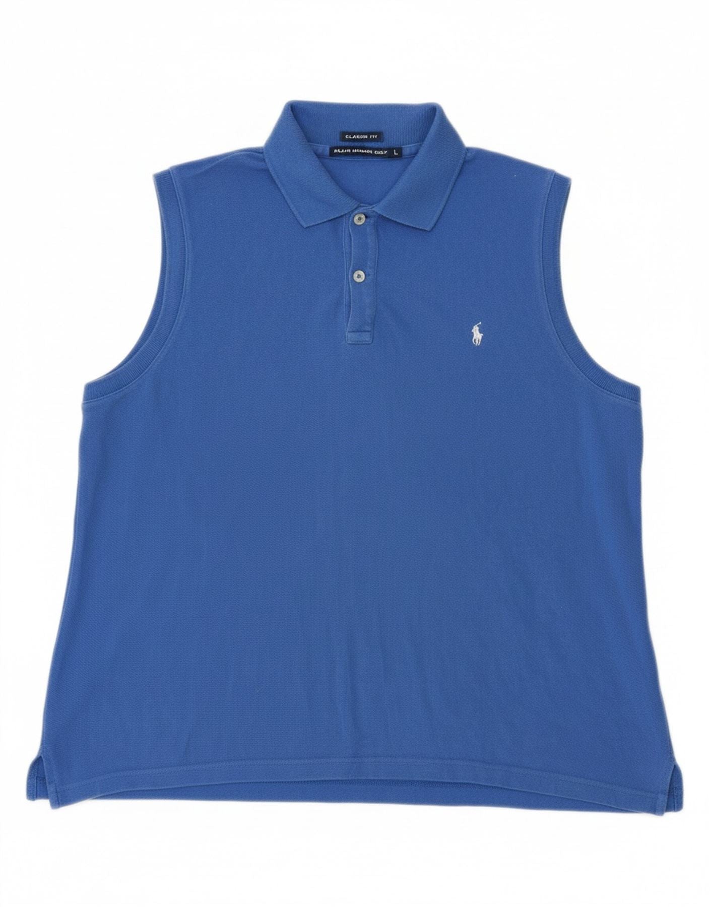 RALPH LAUREN Womens Classic Fit Sleeveless Polo Shirt UK 16 Large Blue