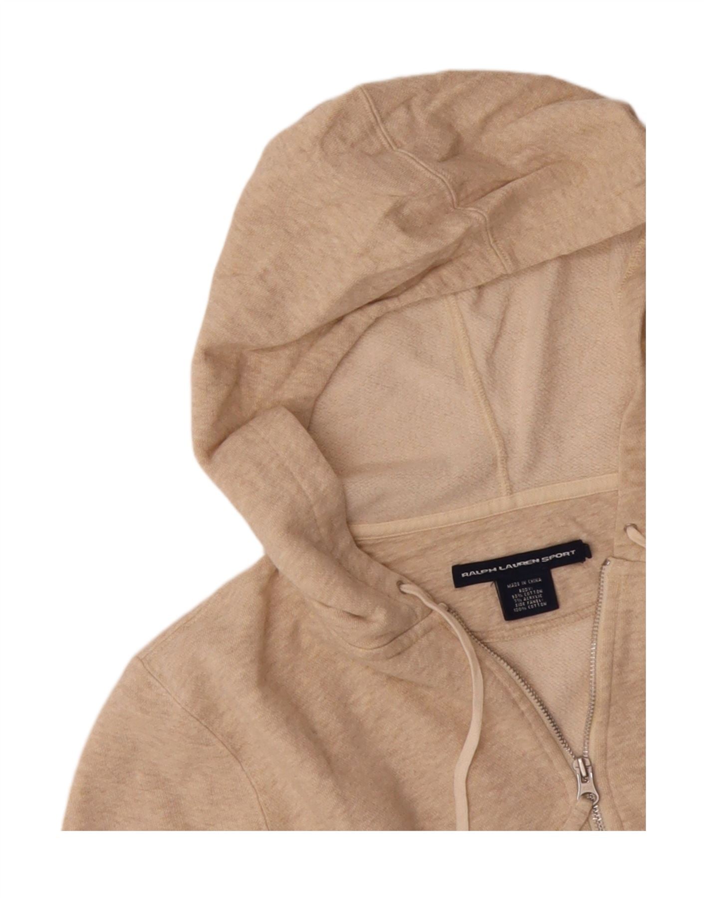 RALPH LAUREN Womens Crop Zip Hoodie Sweater UK 18 XL Beige Cotton