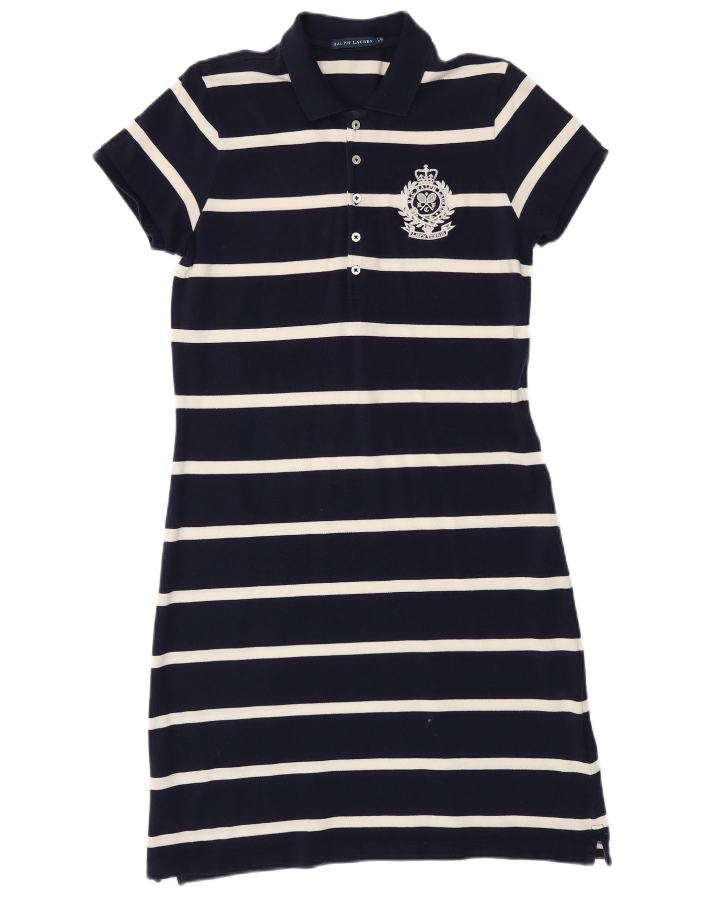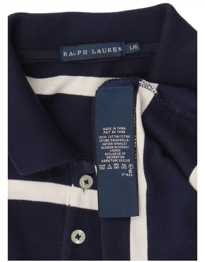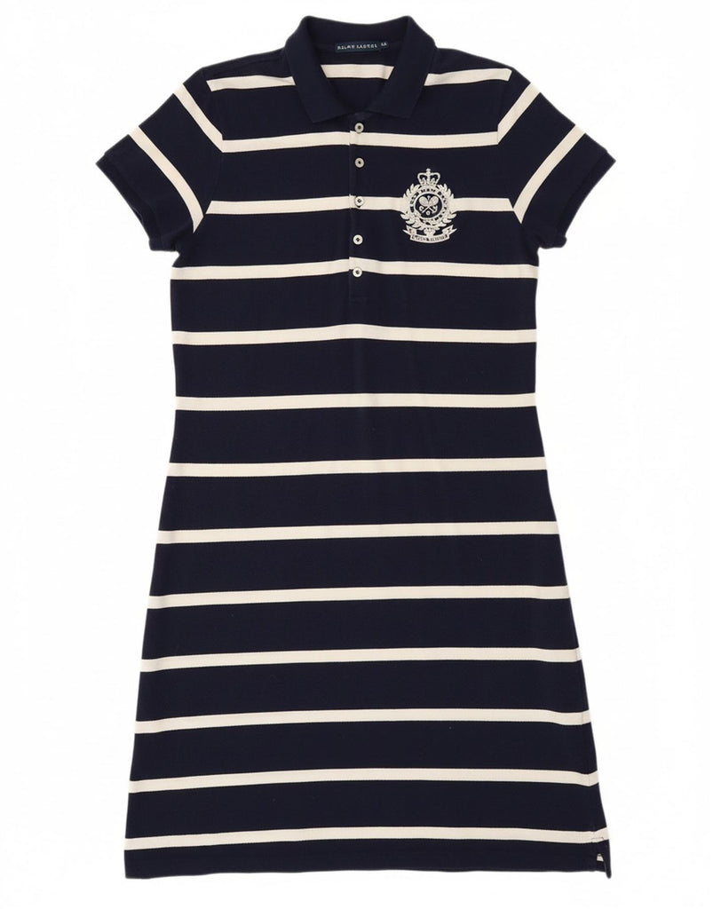 RALPH LAUREN Womens Polo Dress UK 14 Large Navy Blue Striped Cotton
