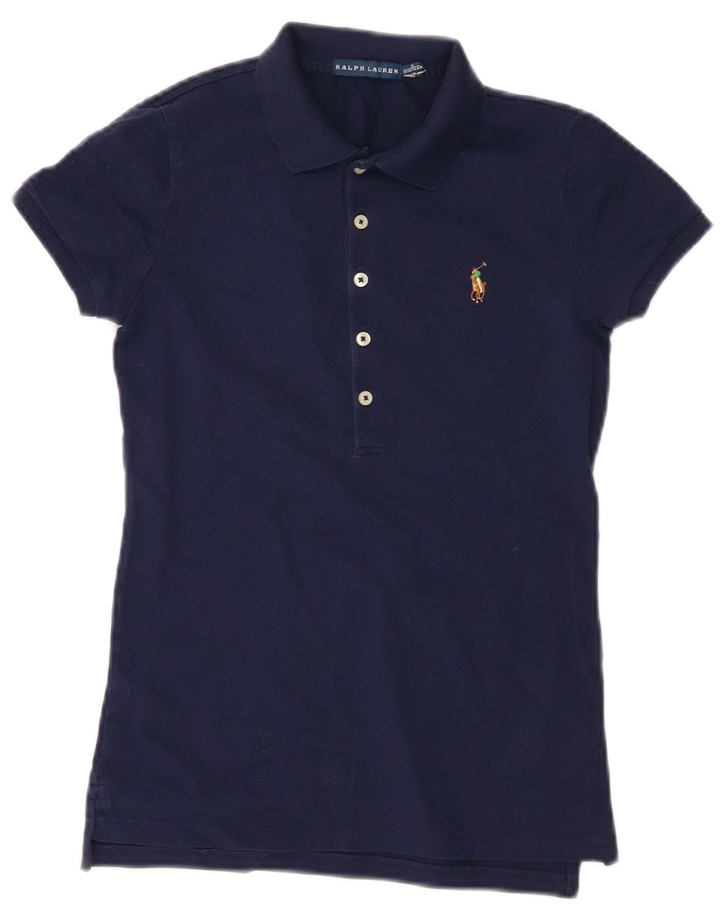 RALPH LAUREN Womens Polo Shirt UK 10 Small Navy Blue Cotton