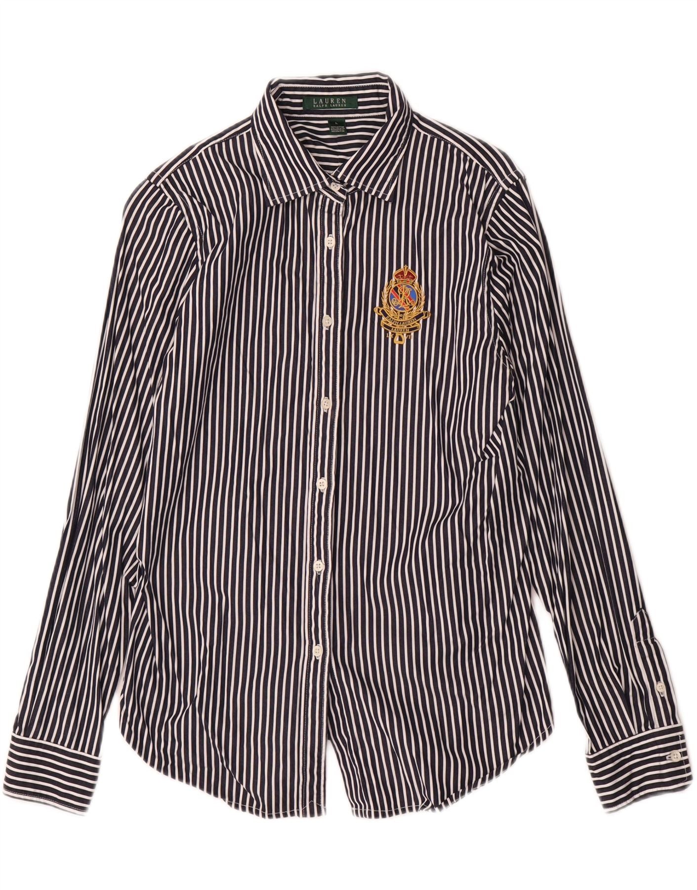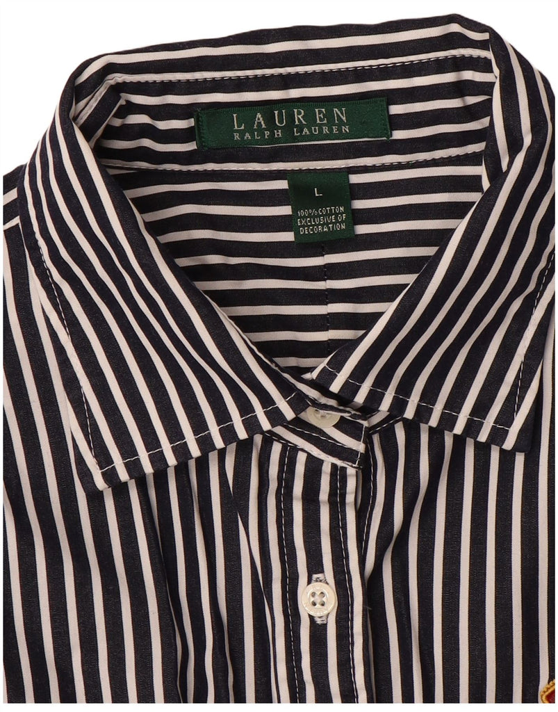 RALPH LAUREN Womens Shirt UK 14 Large Black Pinstripe Cotton