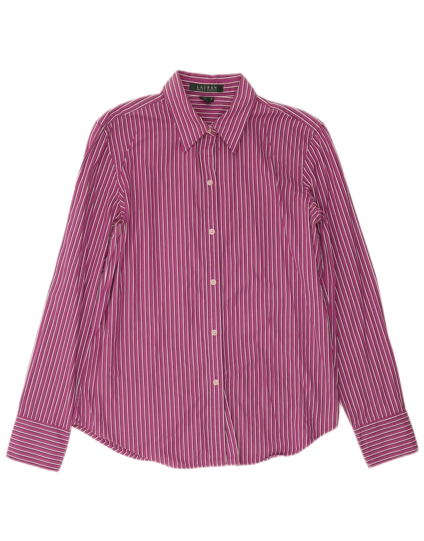 RALPH LAUREN Dameskjorte UK 14 Medium Lilla Stribet Bomuld