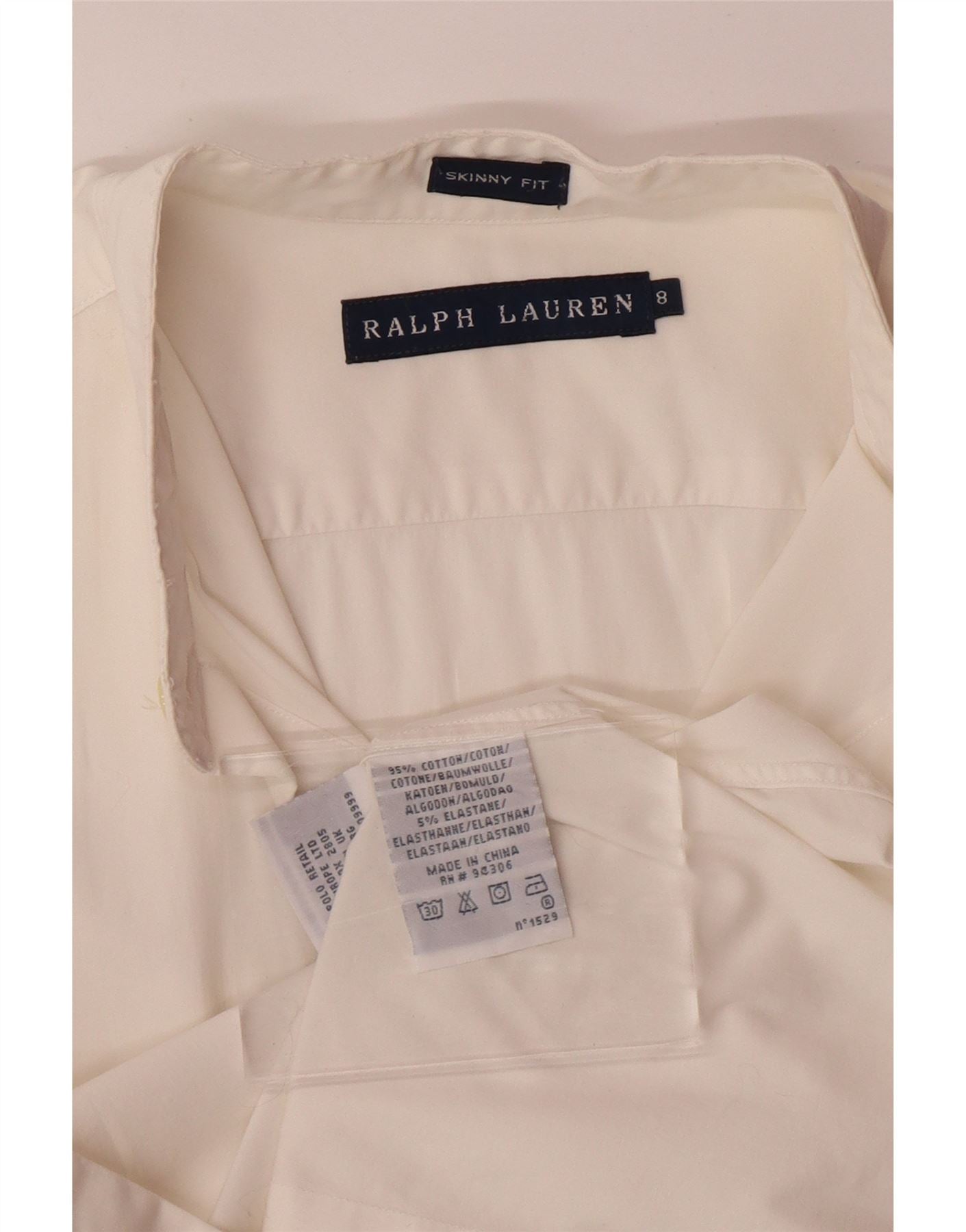 RALPH LAUREN Dame Skinny Fit skjorte US 8 Medium Off White Bomuld