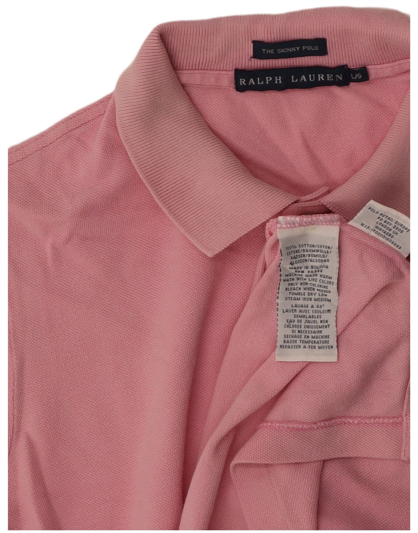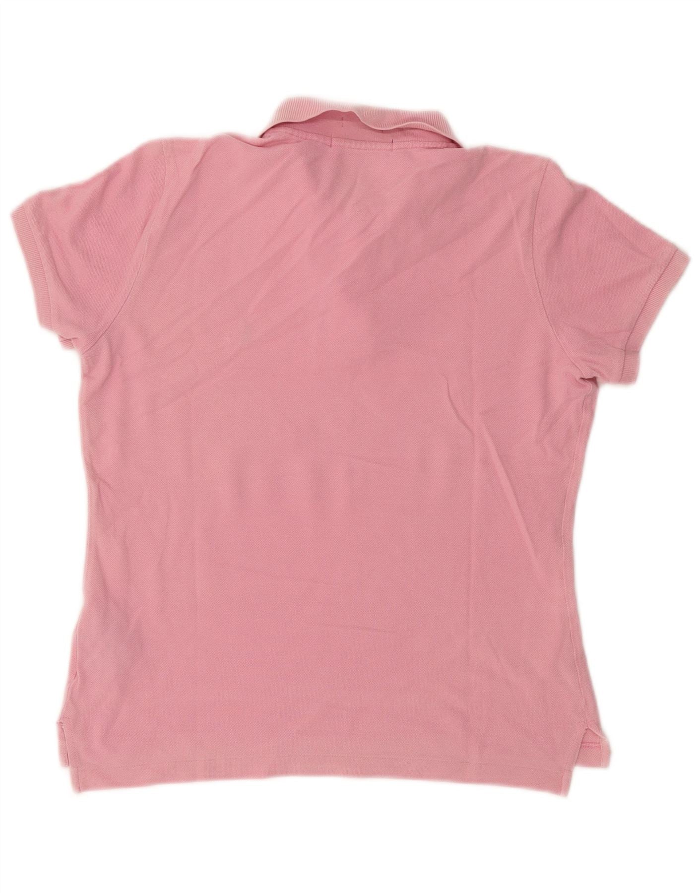 RALPH LAUREN Womens Skinny Polo Shirt UK 14 Large Pink Cotton