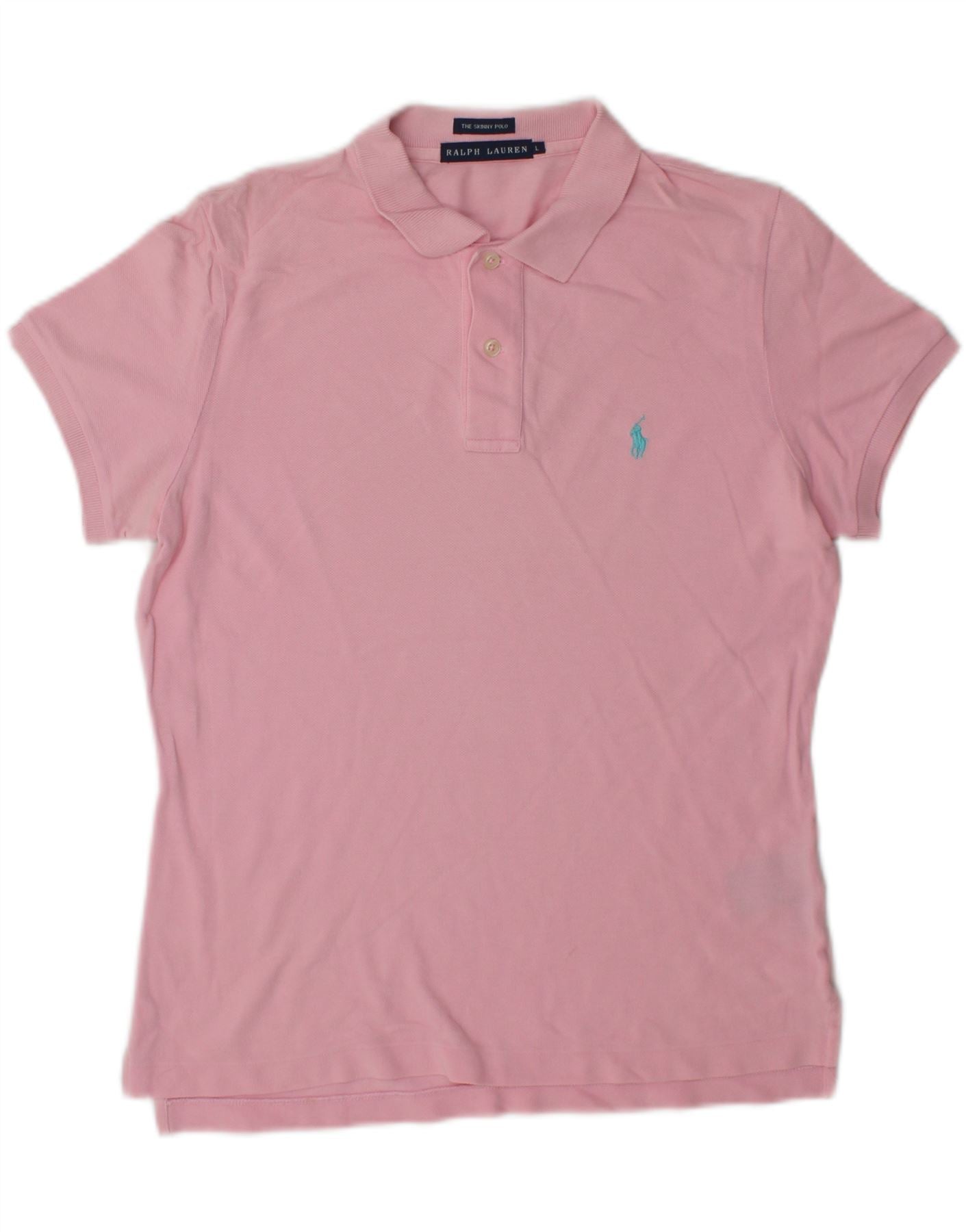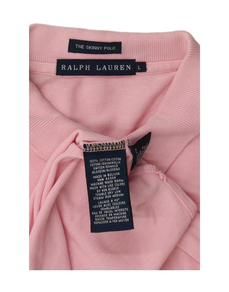 RALPH LAUREN Womens Skinny Polo Shirt UK 16 Large Pink Cotton