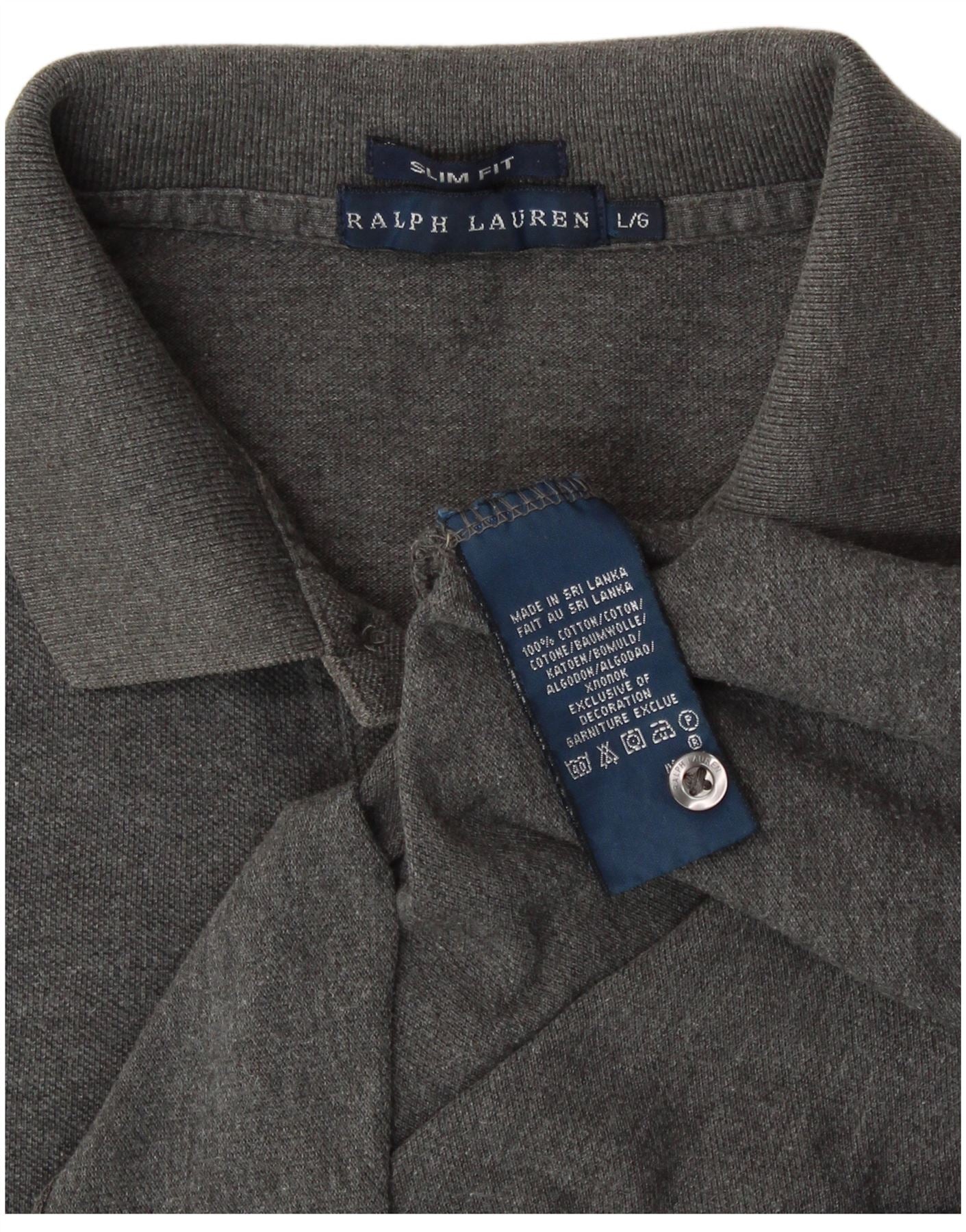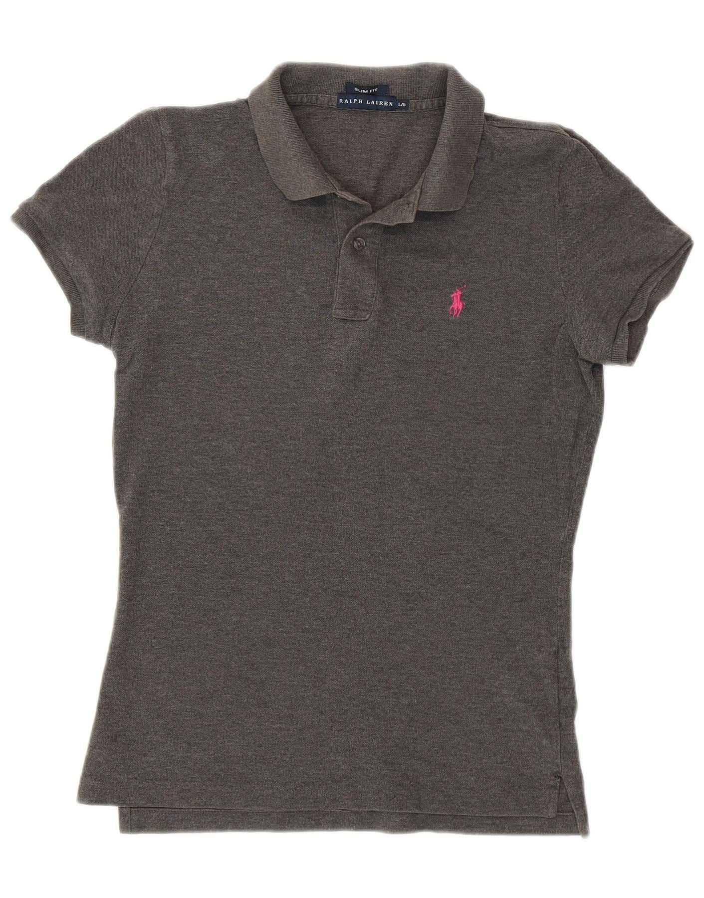 RALPH LAUREN Dame Slim Fit Polo Shirt UK 14 Stor Grå Bomuld