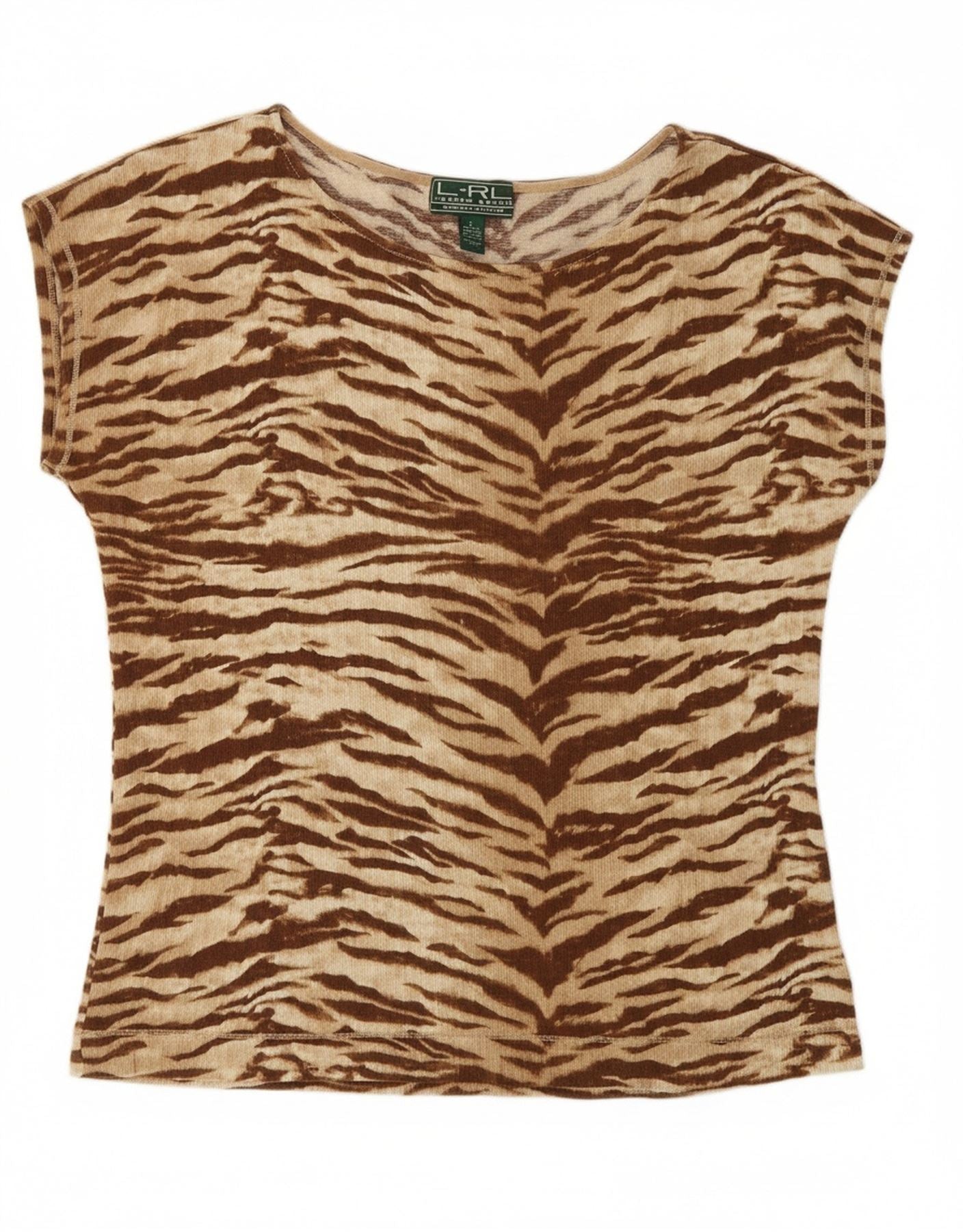 RALPH LAUREN Womens T-Shirt Top UK 16 Large Brown Animal Print Cotton
