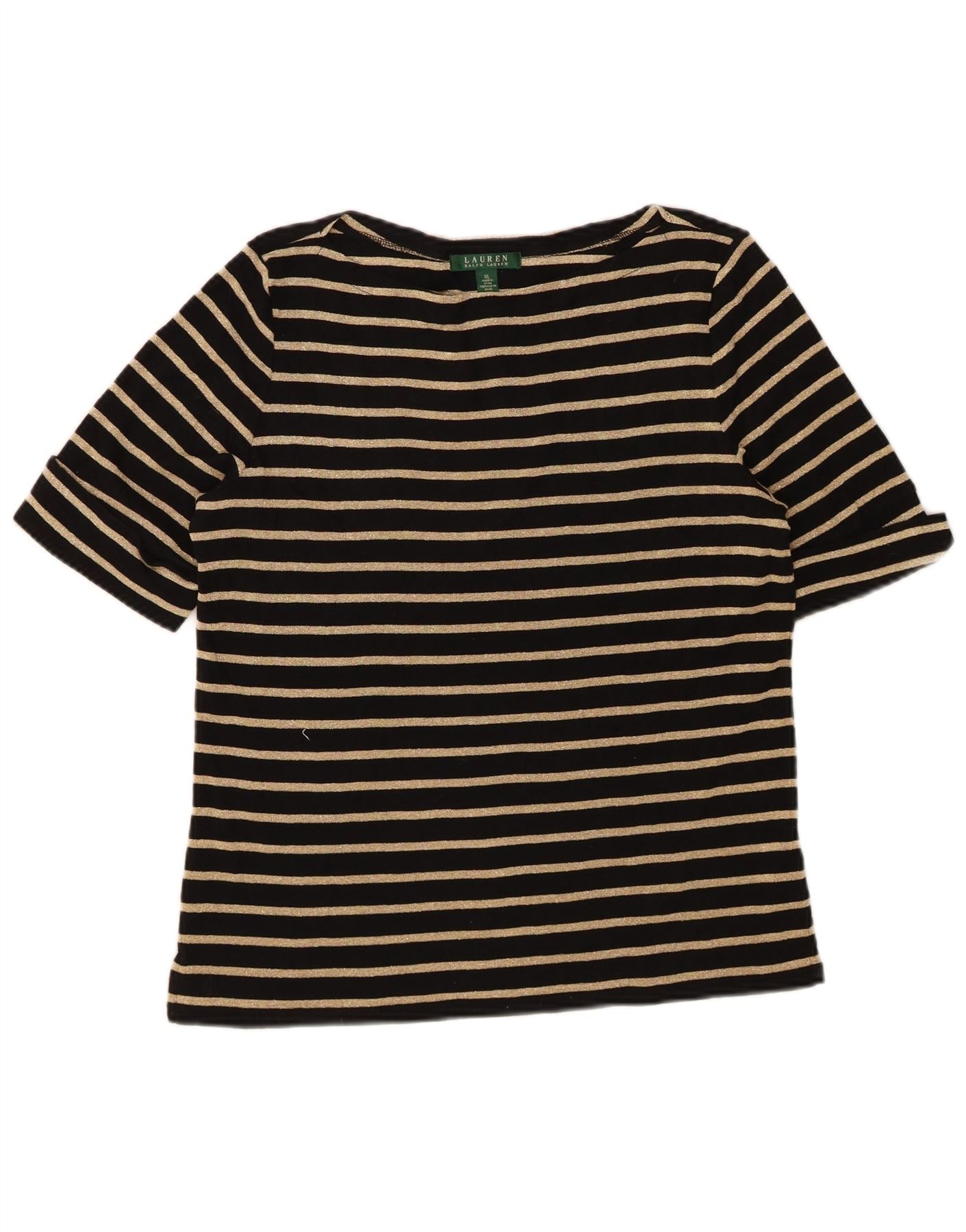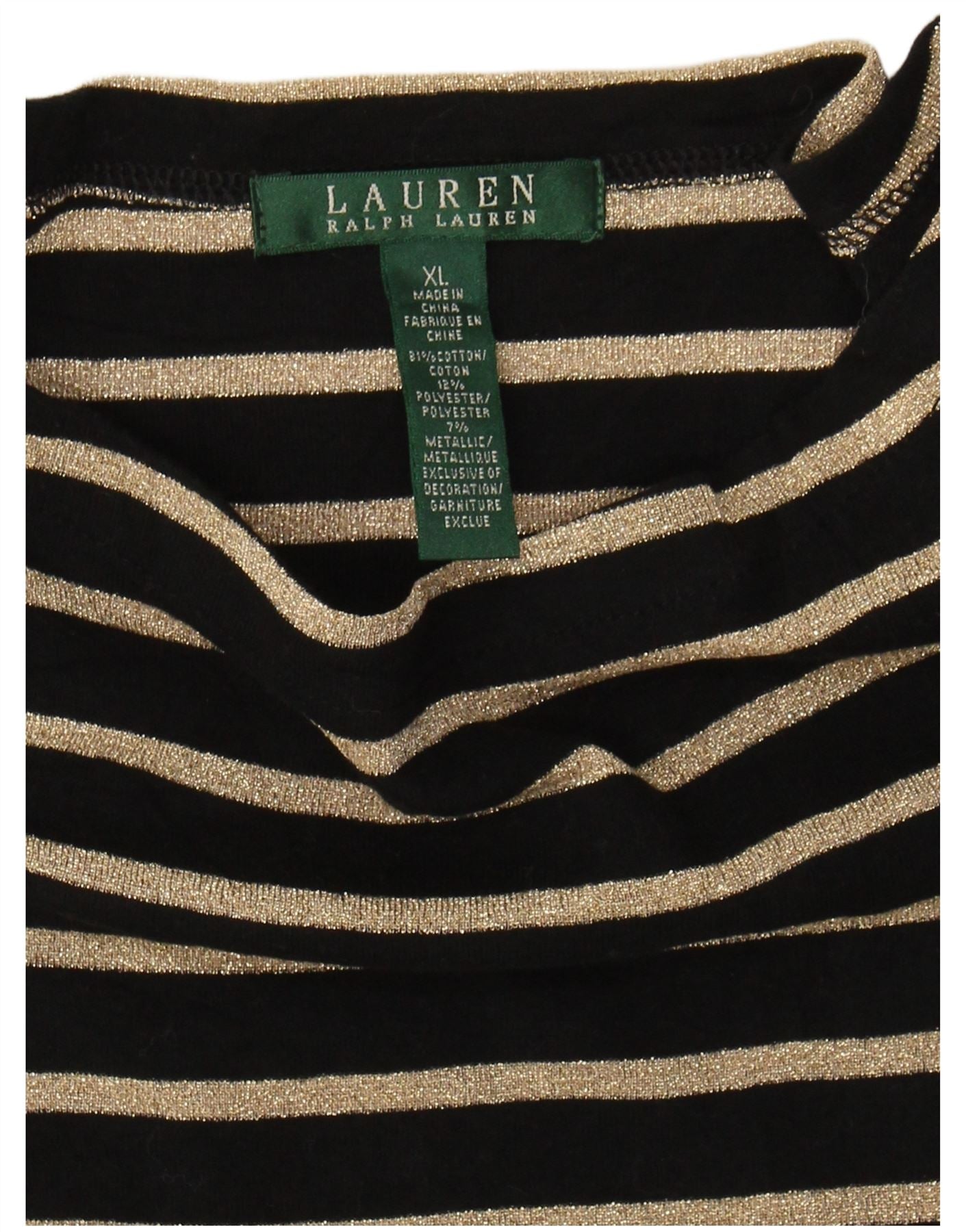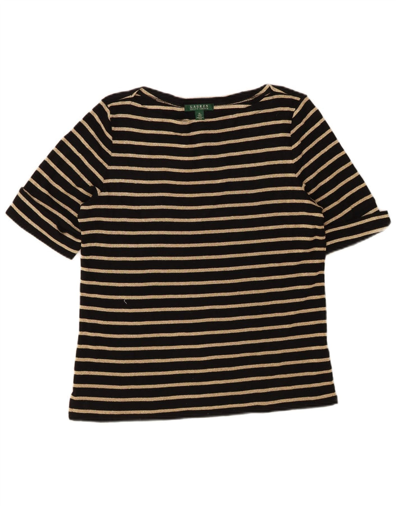 RALPH LAUREN Womens T-Shirt Top UK 18 XL Black Striped Cotton