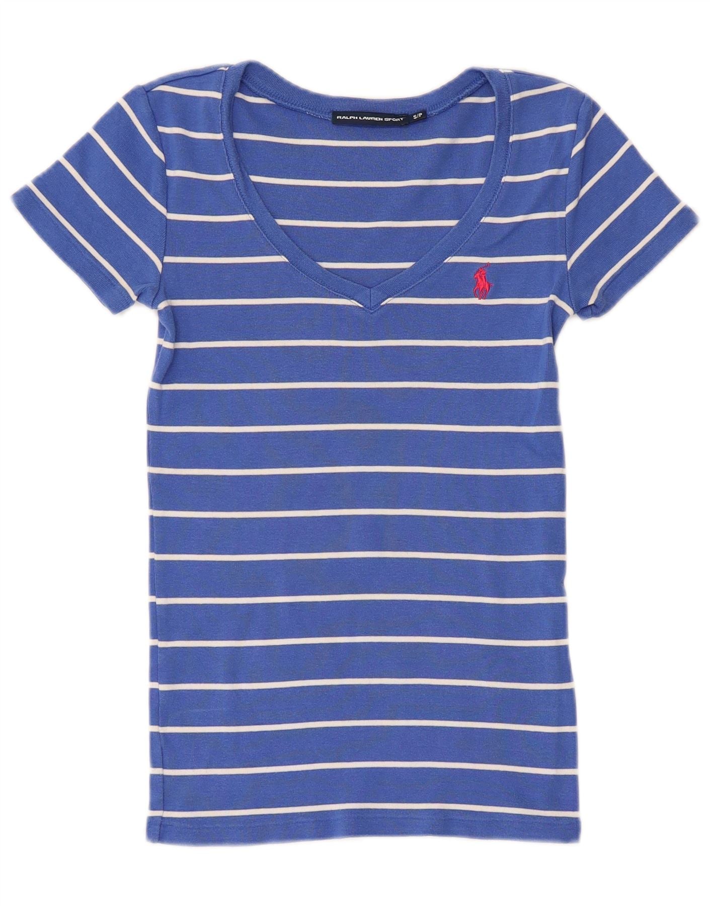 RALPH LAUREN Womens T-Shirt Top UK 8 Small Blue Striped Cotton