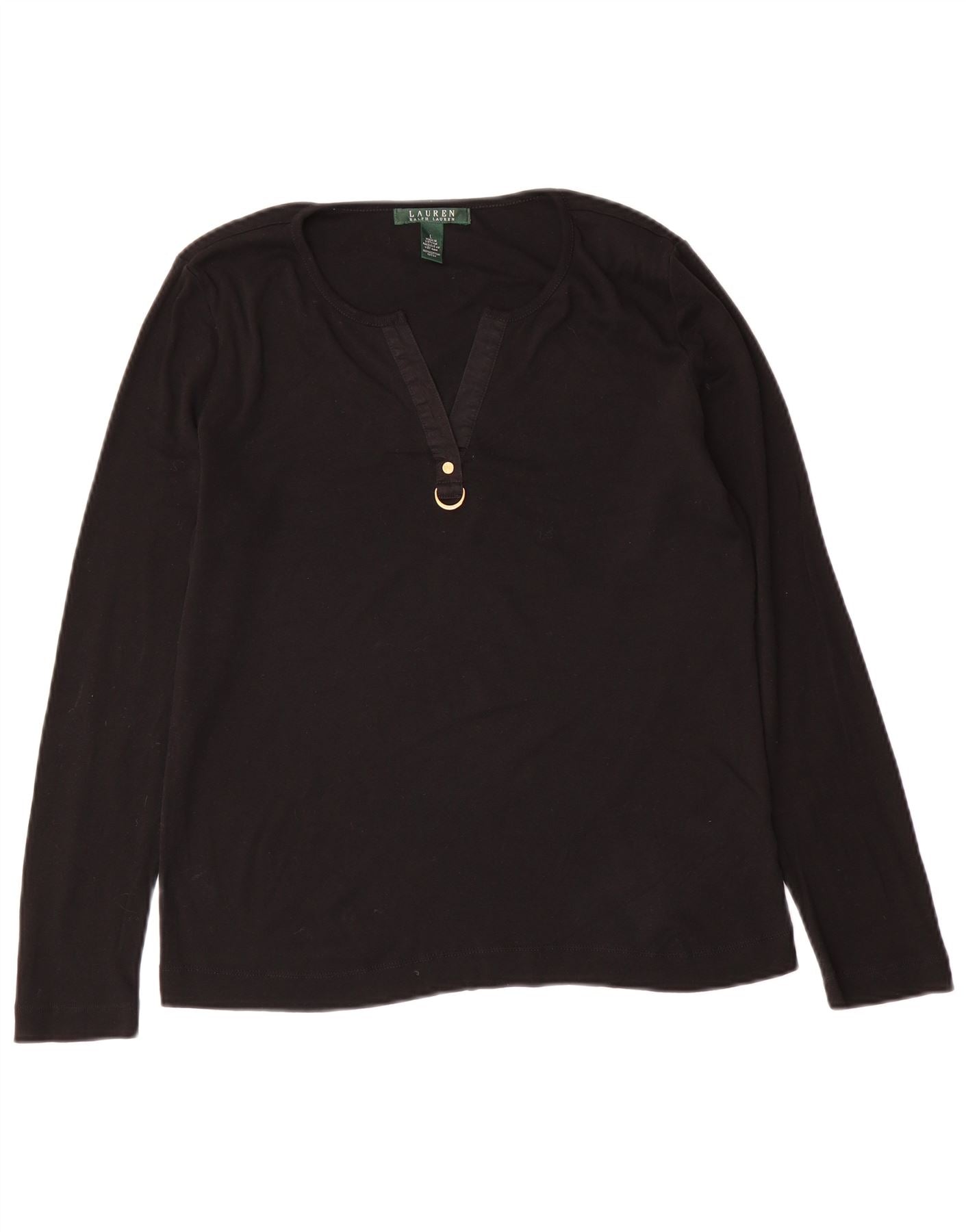 RALPH LAUREN Dame Top Langærmet UK 16 Stor Sort Bomuld