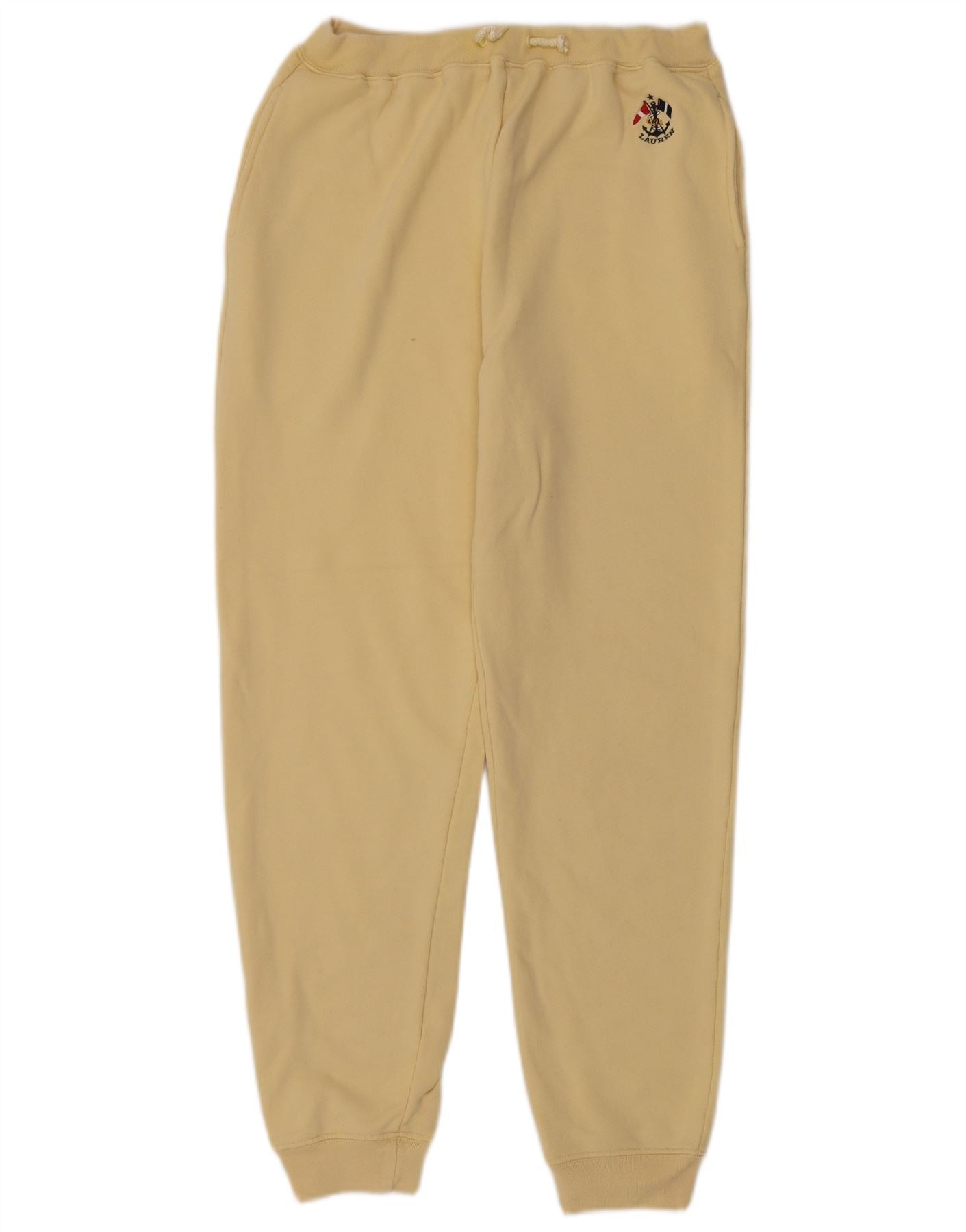 RALPH LAUREN Womens Tracksuit Trousers Joggers UK 14 Medium Yellow Cotton