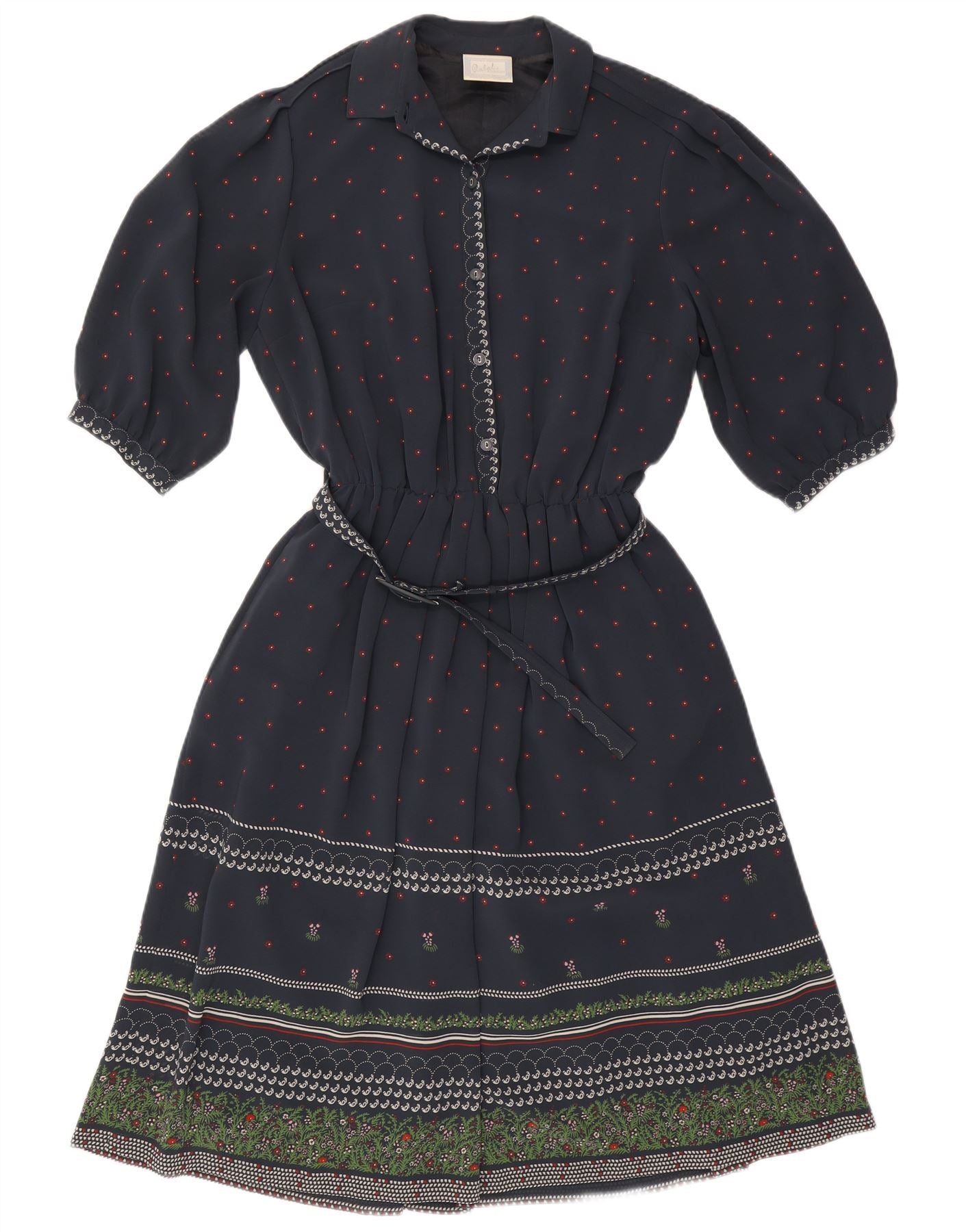 RALPH dame 3/4 ærmet A-line kjole EU 46 XL marineblå blomsterpolyester