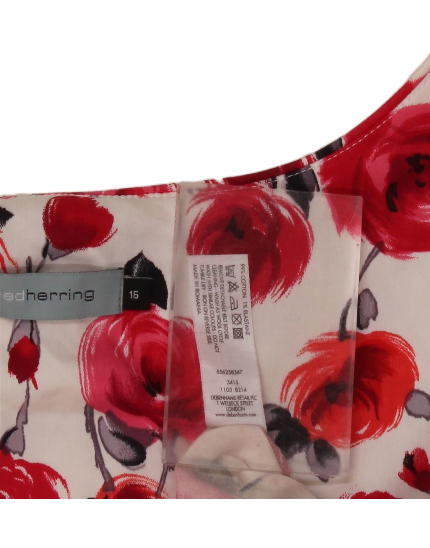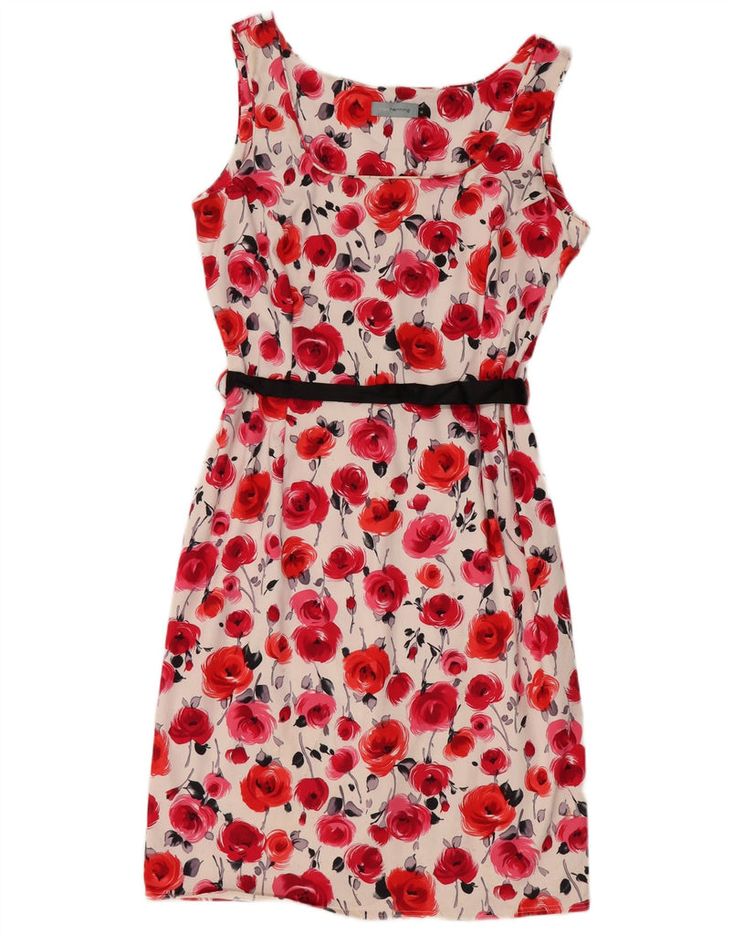RED HERRING Womens Sleeveless Sheath Dress UK 16 Large Red Floral Cotton