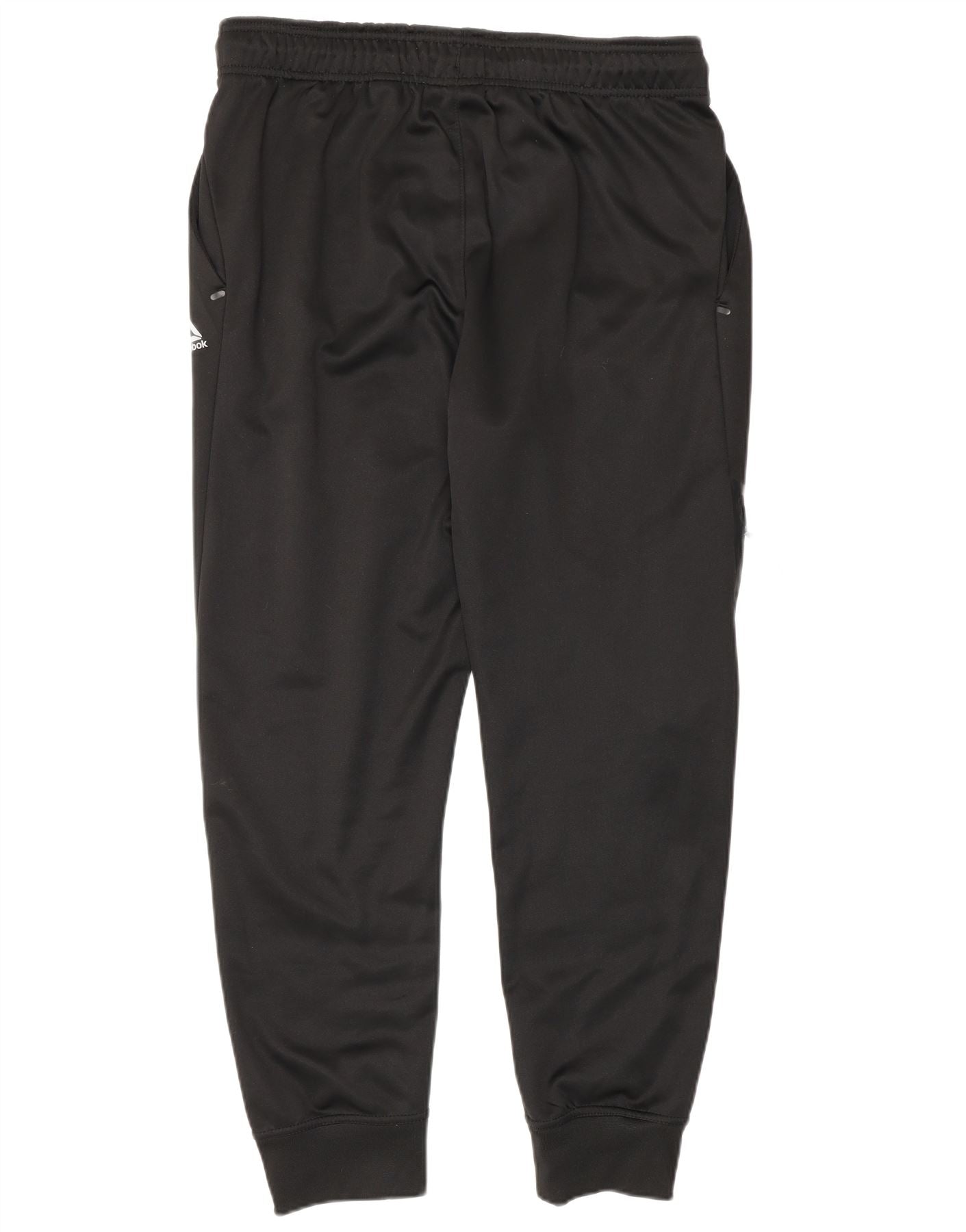 - AI beskrivelse: Disse Reebok joggers til mænd er lavet af glat sort polyesterjersey. De har en behagelig pull-on elastik i taljen og en normal pasform. Benene er tilspidsede, afsluttende med pæne manchetter. Praktiske lynlåslommer giver sikker opbevaring. Et subtilt Reebok-logo giver en signaturaccent. Disse bukser er ideelle til træning eller fritidstøj og kombinerer komfort med en strømlinet æstetik.
