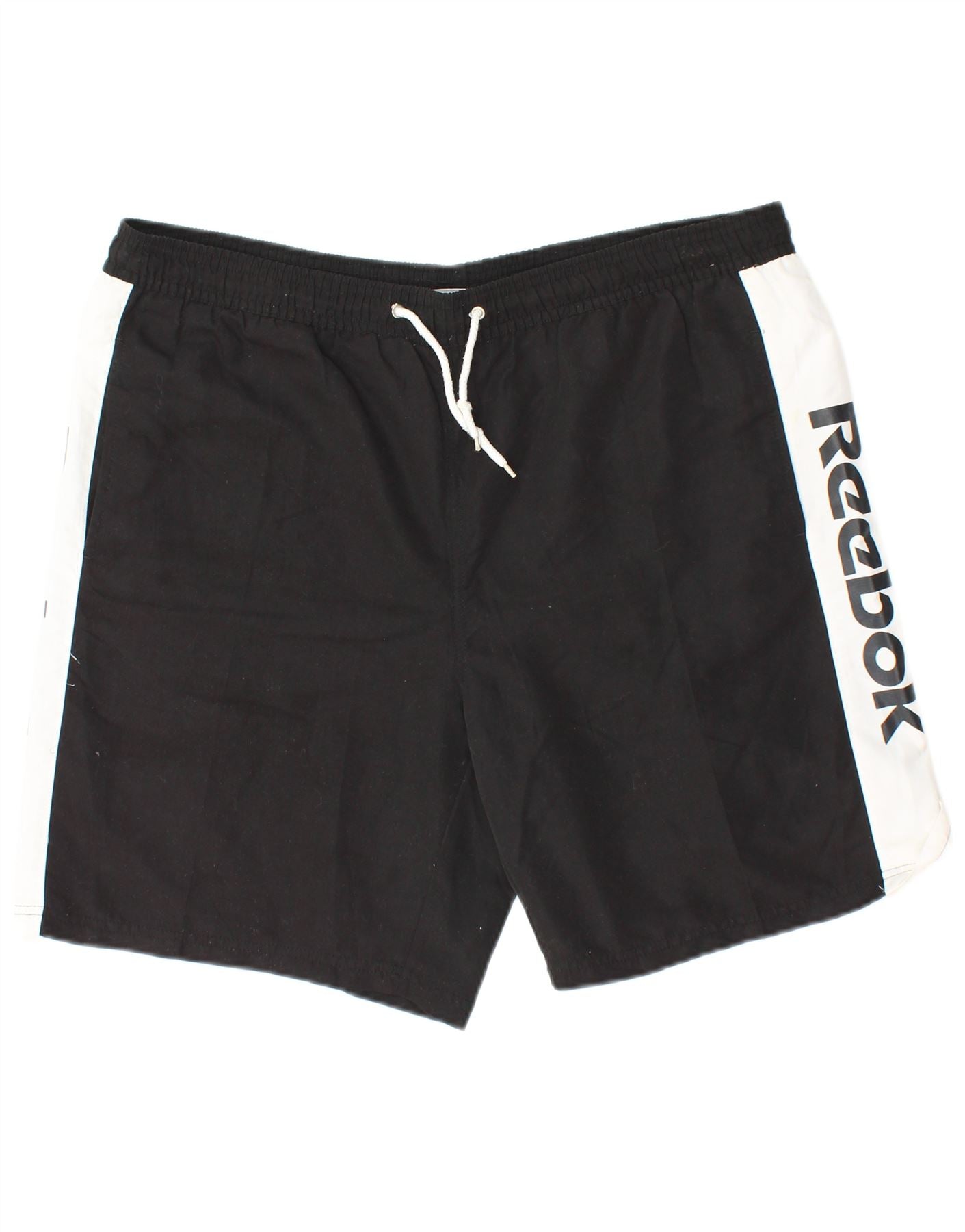 REEBOK Herre grafiske sportsshorts XL Sort Colourblock Polyester