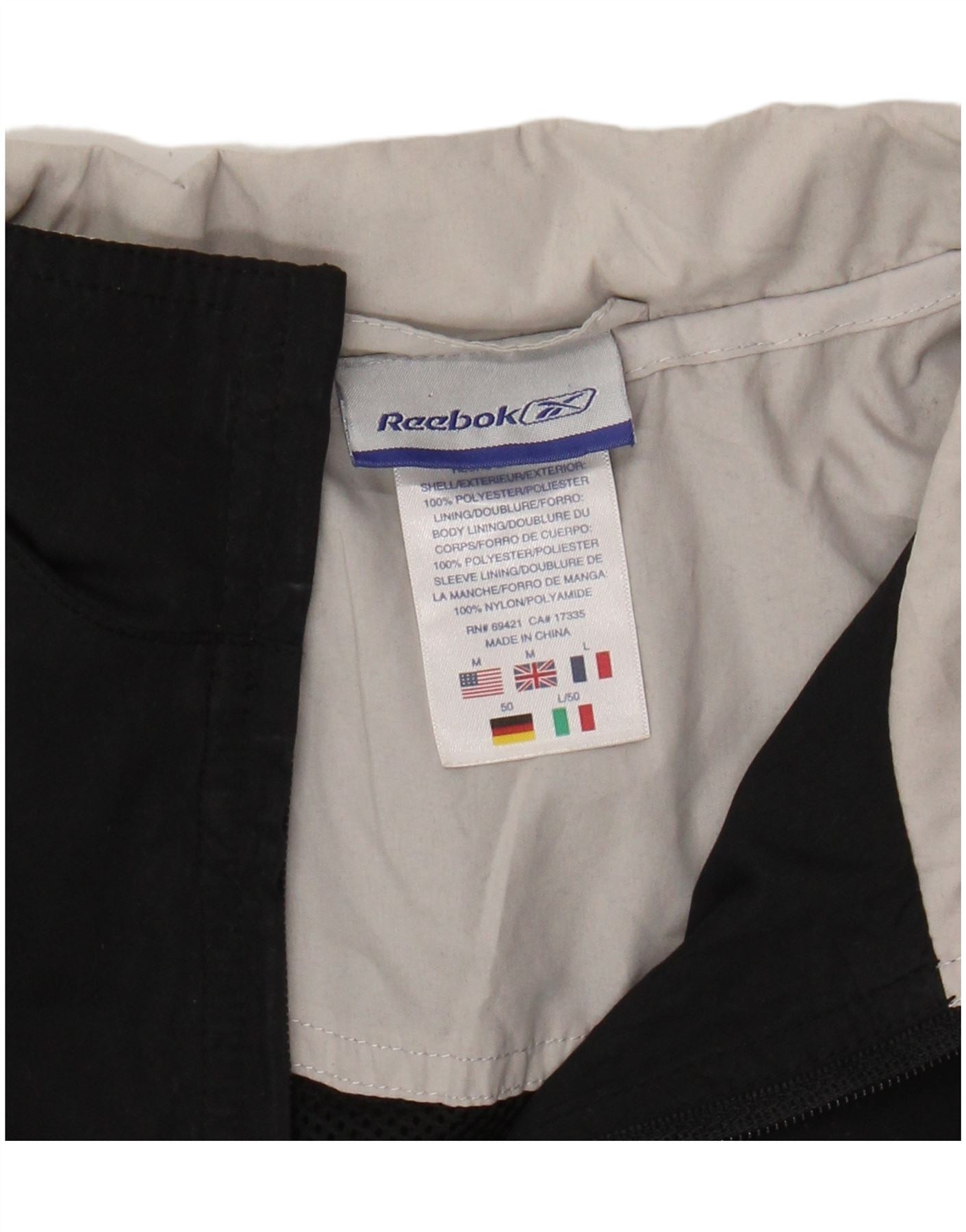 REEBOK Træningsdragt til mænd Topjakke Medium Sort Colourblock Polyester