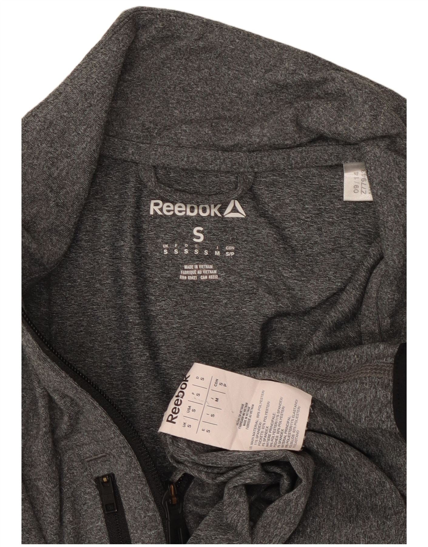 REEBOK Herre Zip Neck Pullover Træningsdragt Top Lille Grå Polyester