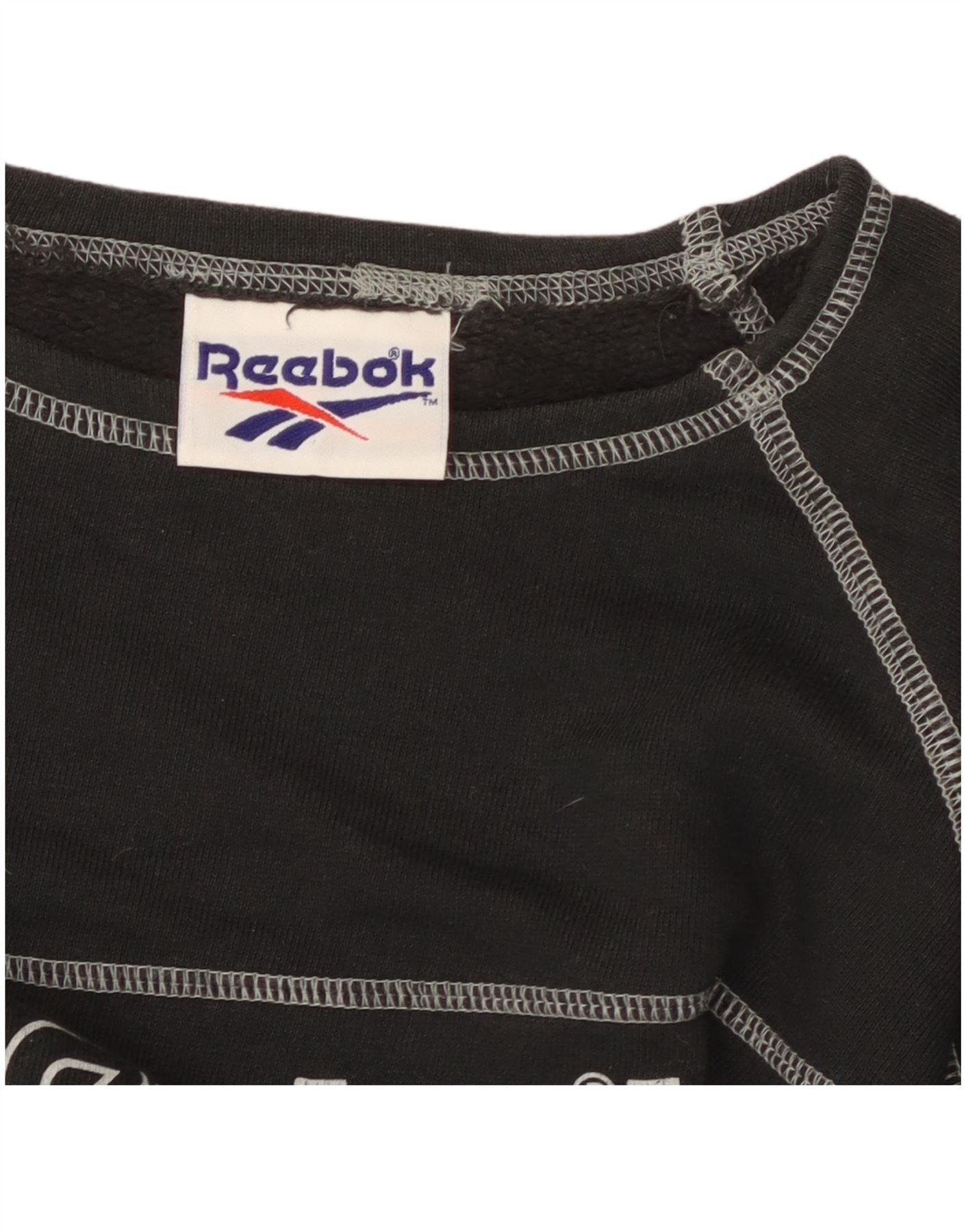 REEBOK Dame Crop Grafisk T-Shirt Top UK 14 Medium Sort Bomuld
