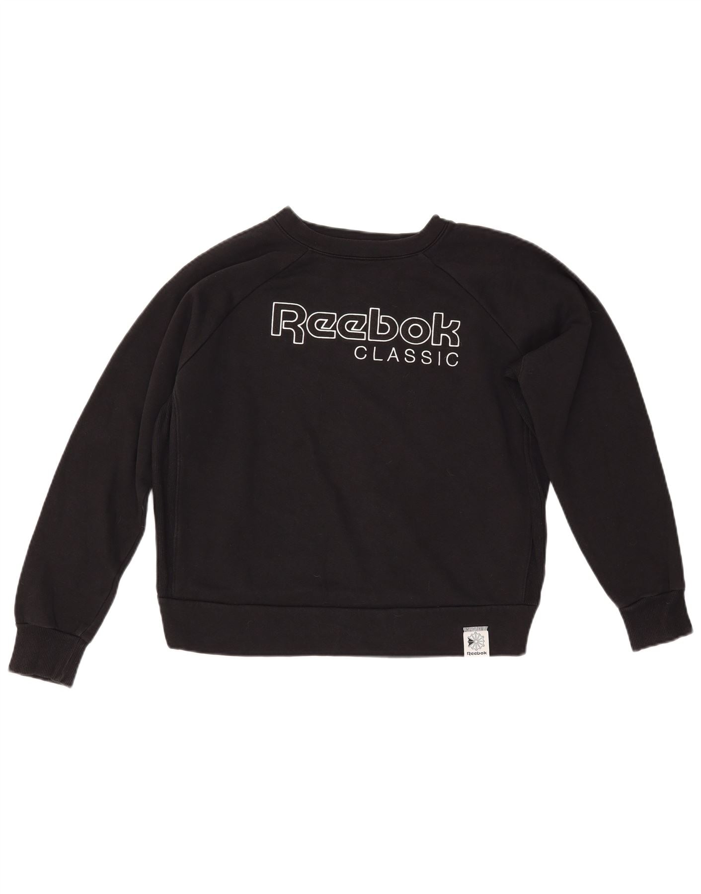 REEBOK Grafisk Sweatshirt Jumper UK 14 Medium Sort Bomuld