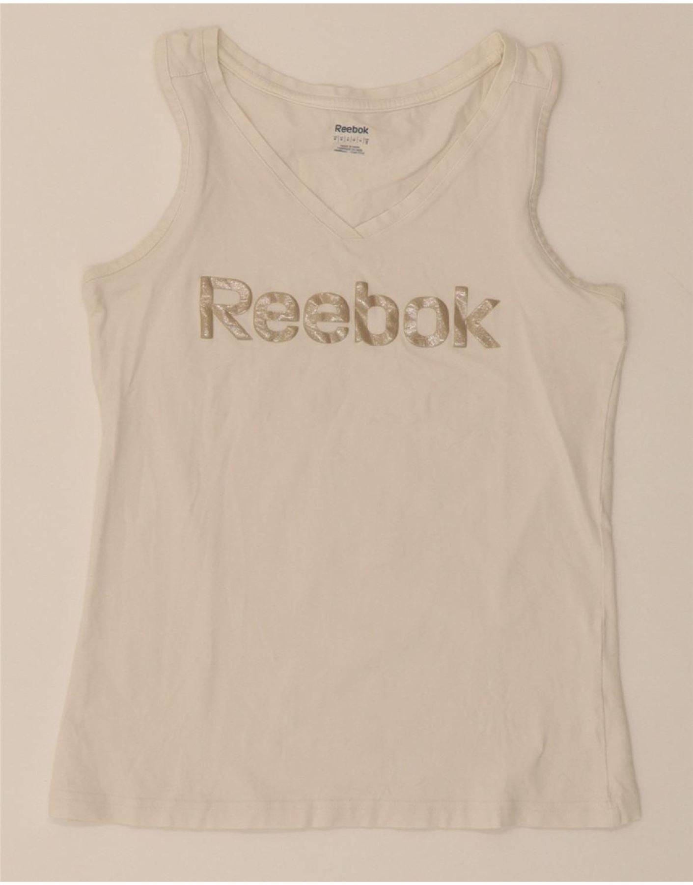 REEBOK Womens Graphic Vest Top UK 12 Medium White Cotton
