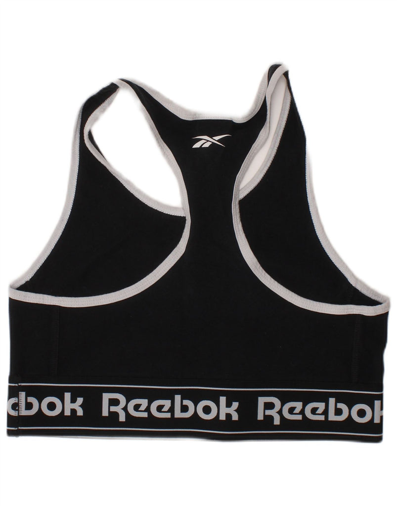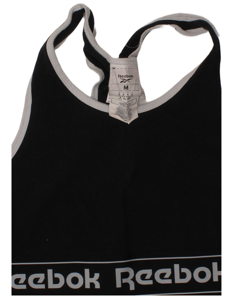 REEBOK Womens Sport Bra Graphic Vest Top UK 12/14 Medium Black Sports