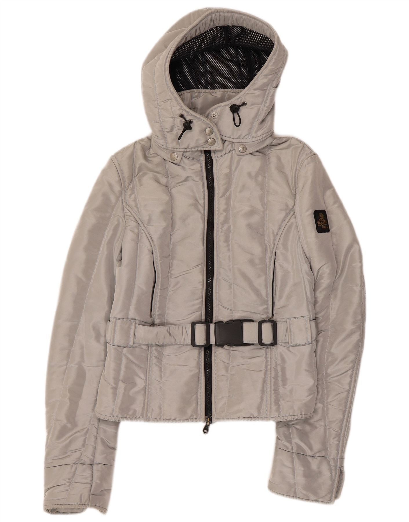 REFRIGIWEAR Dame Cruz Hooded Bomber Jacket UK 14 Large Silver Polyester
