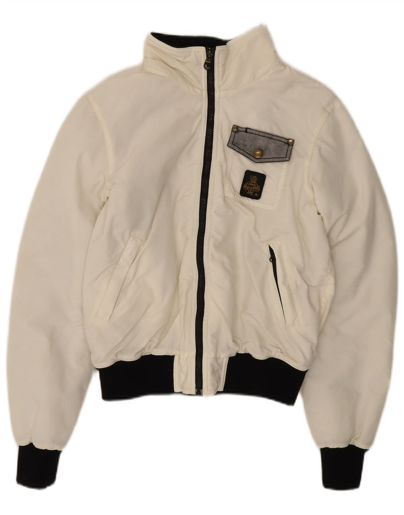 REFRIGIWEAR Womens Oversized Bomber Jacket UK 10 Small White Polyamide