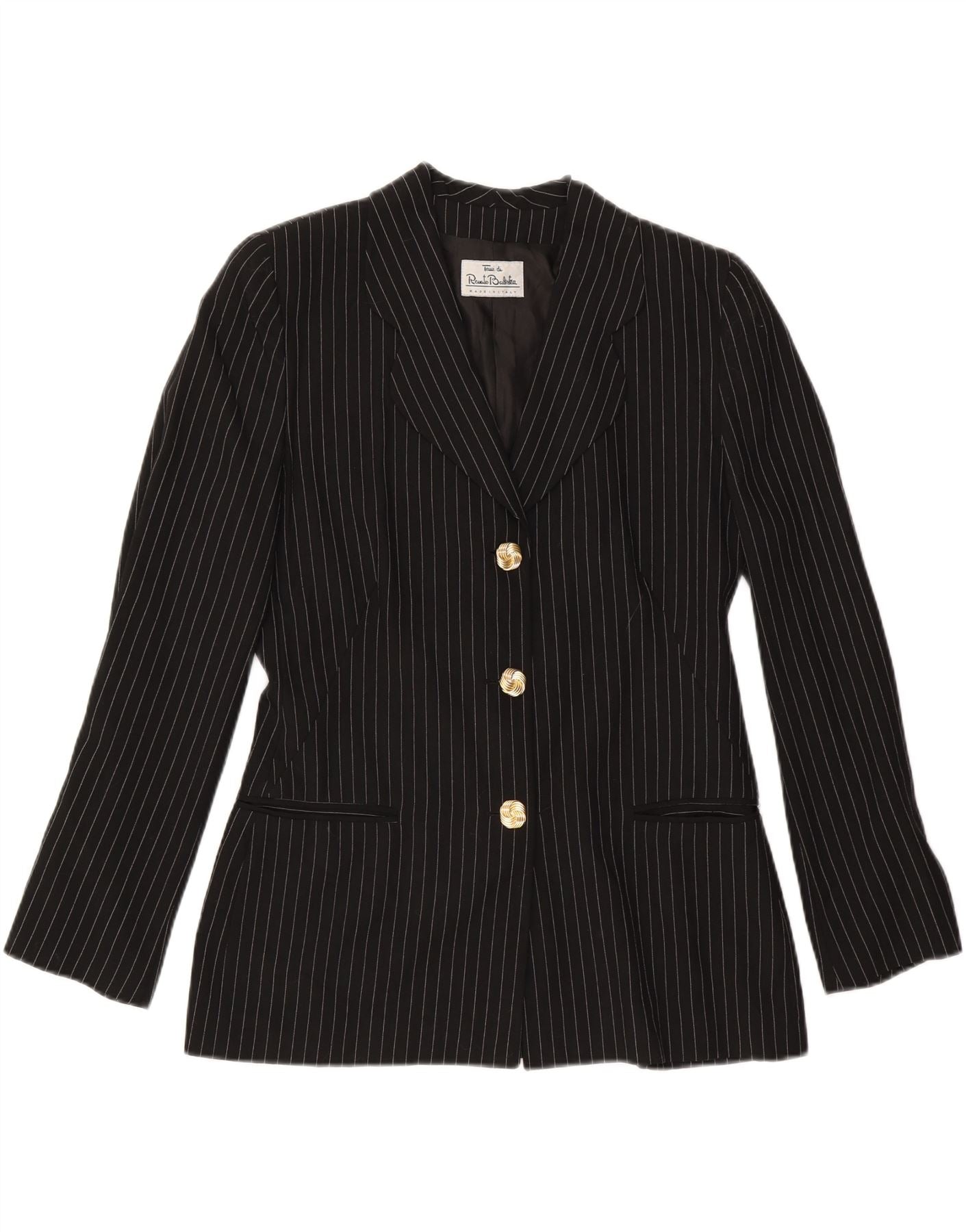 RENATO BALESTRA Dame 3-knaps blazerjakke IT 46 Stor sort nålestribe