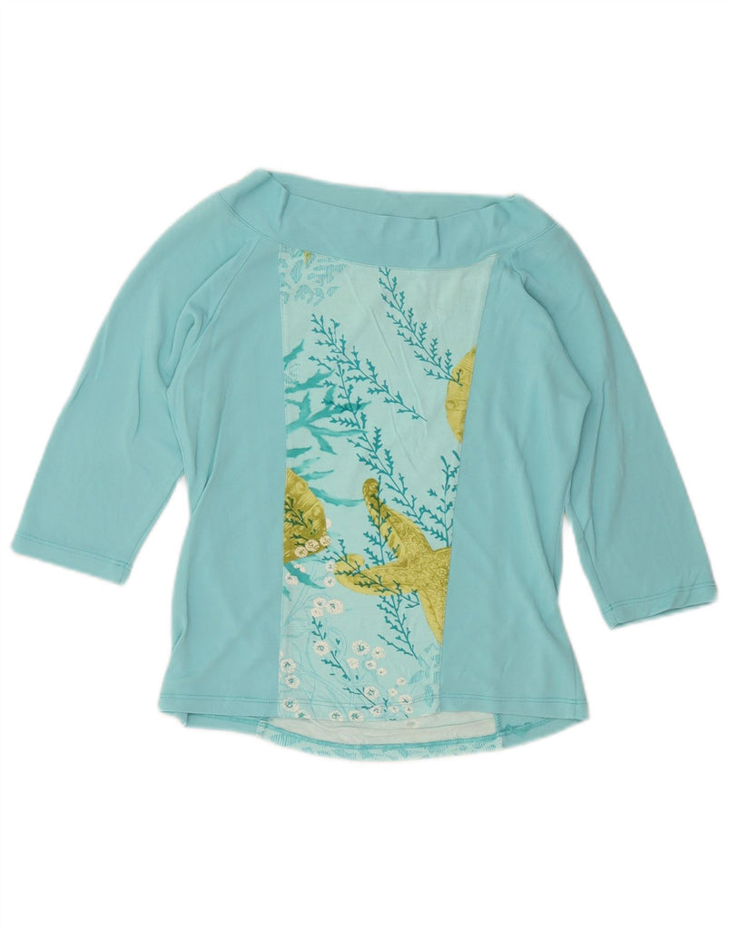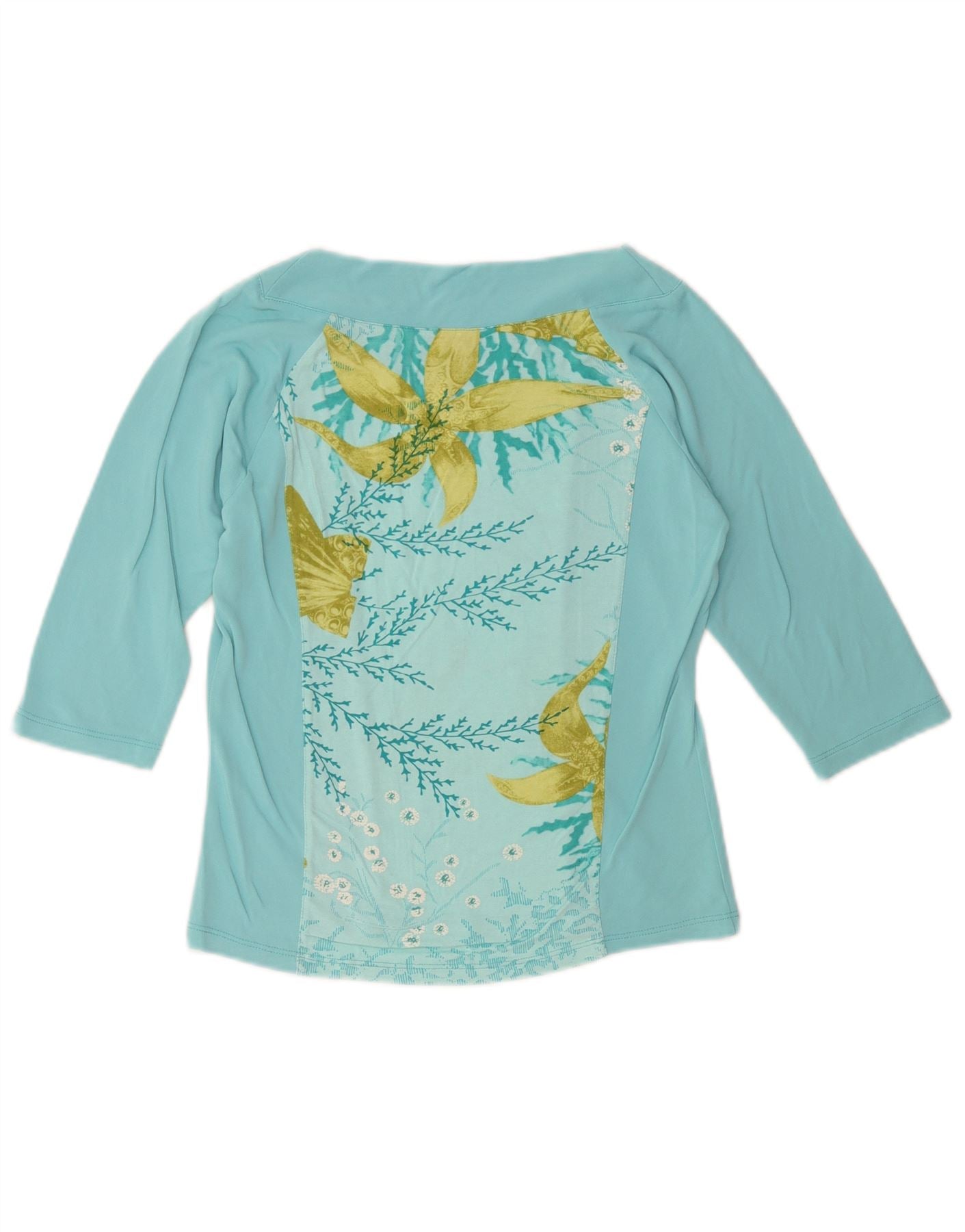 RENATO BALESTRA Womens Crop Top 3/4 Sleeve UK 10 Small Blue Floral