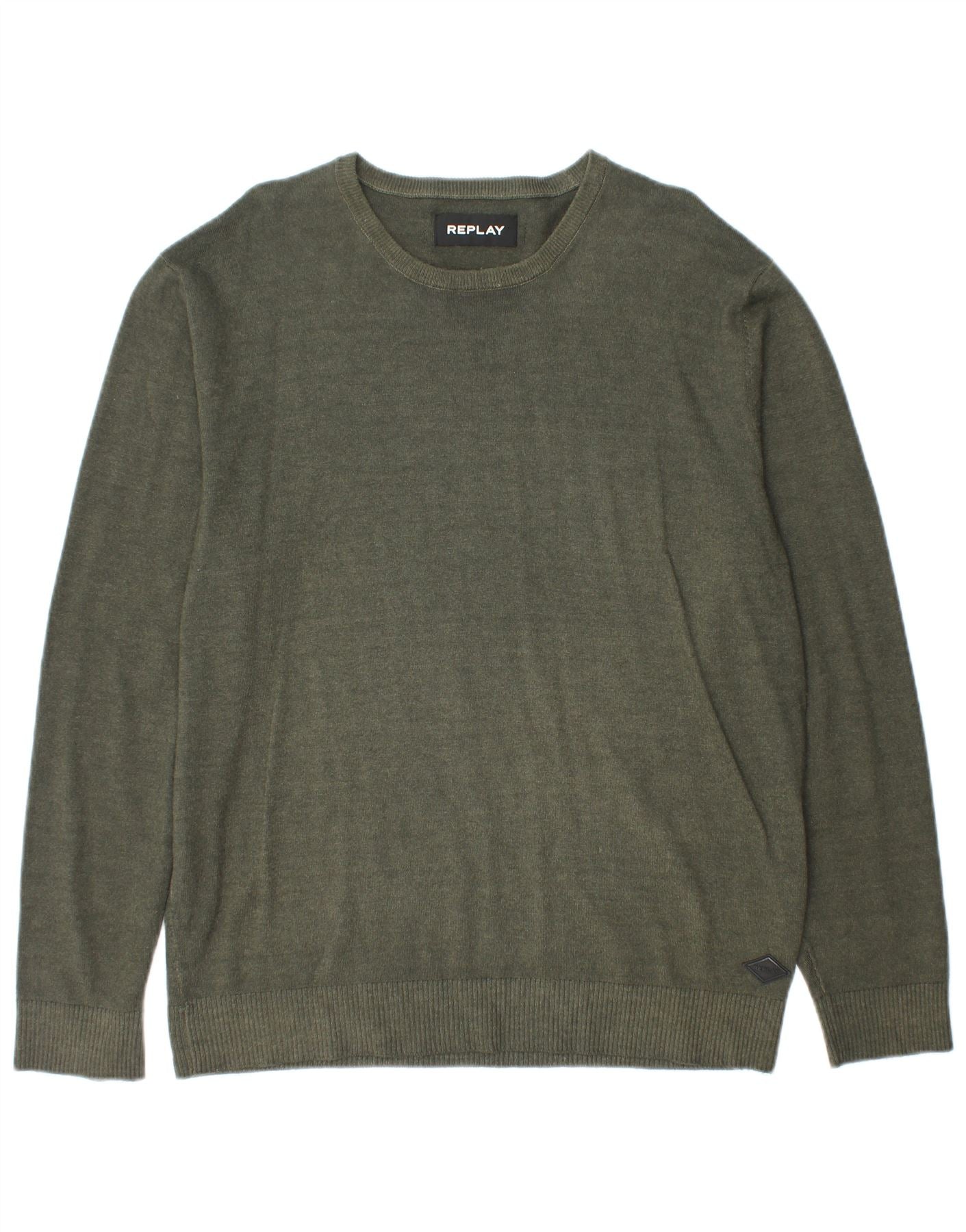 REPLAY Herre Boat Neck Jumper Sweater XL Khaki Wool