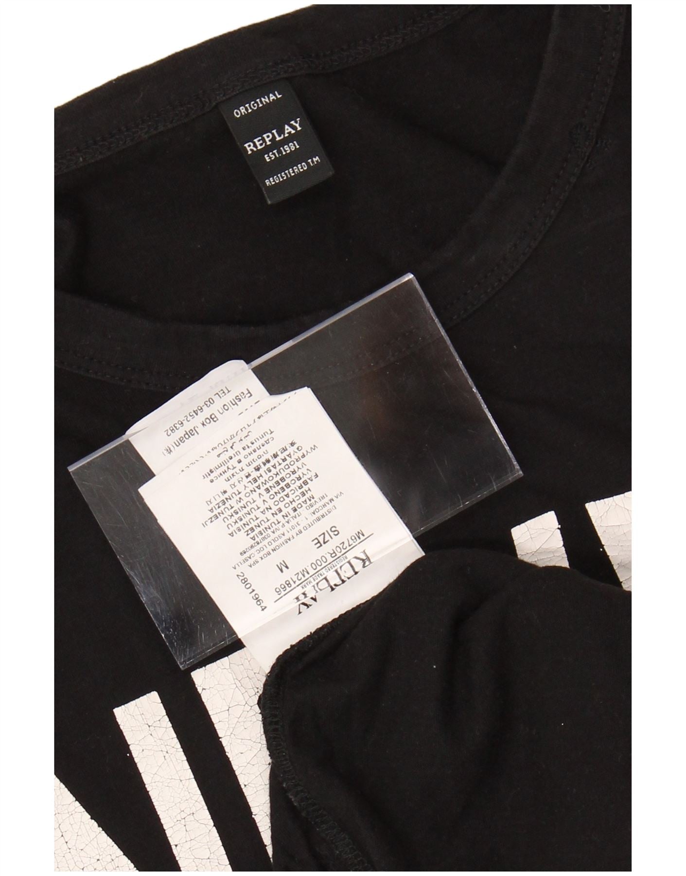 REPLAY Herre Grafisk T-Shirt Top Medium Sort Bomuld