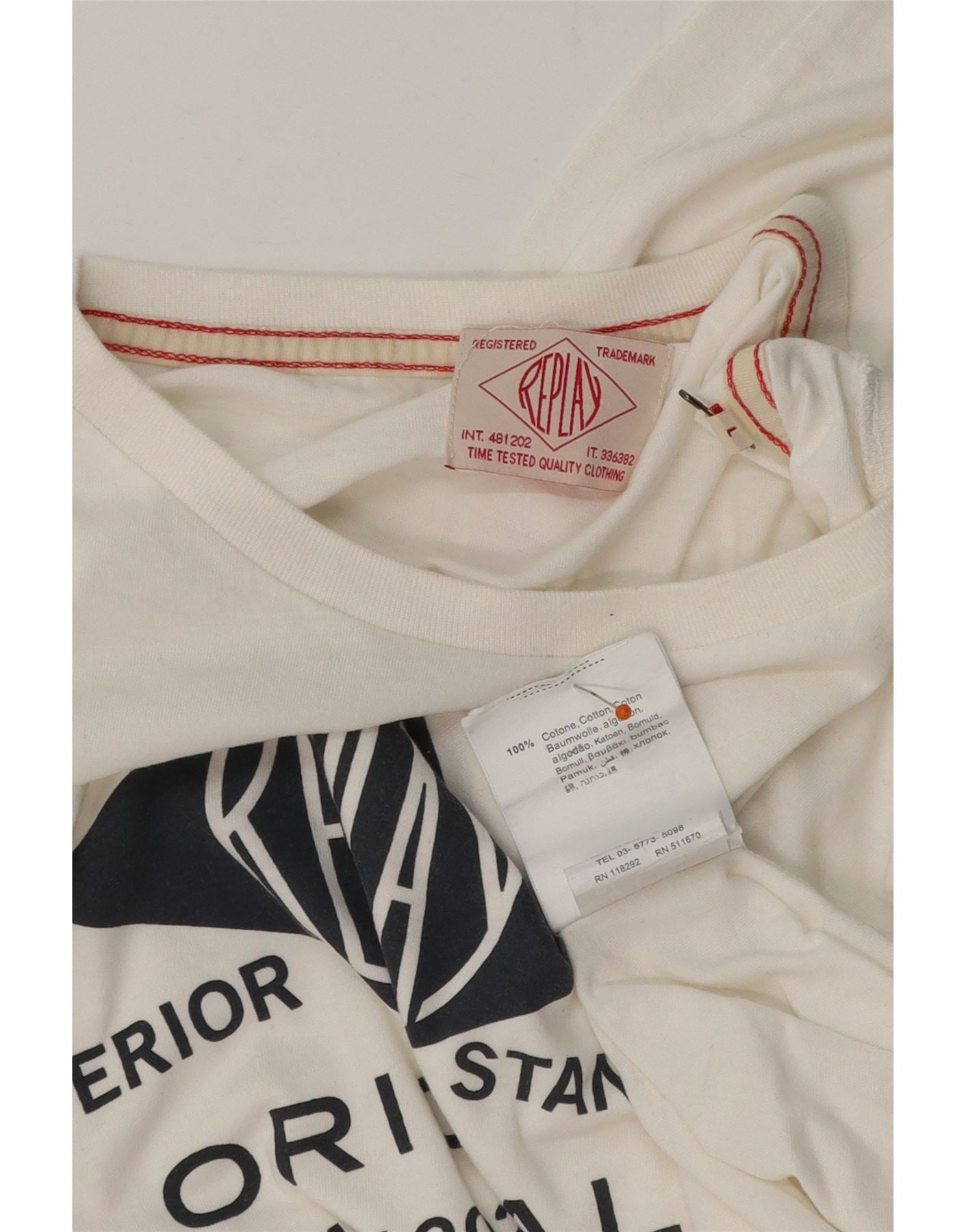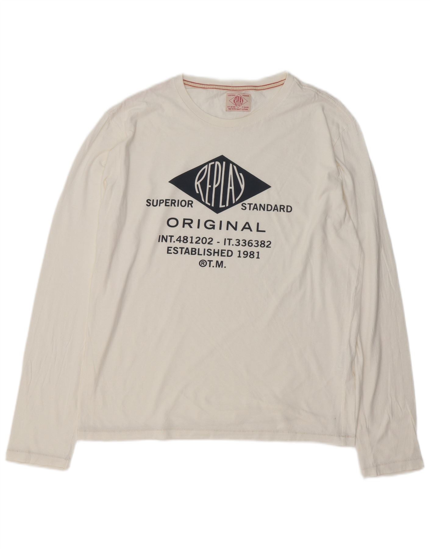 REPLAY Herre grafisk top langærmet stor hvid bomuld