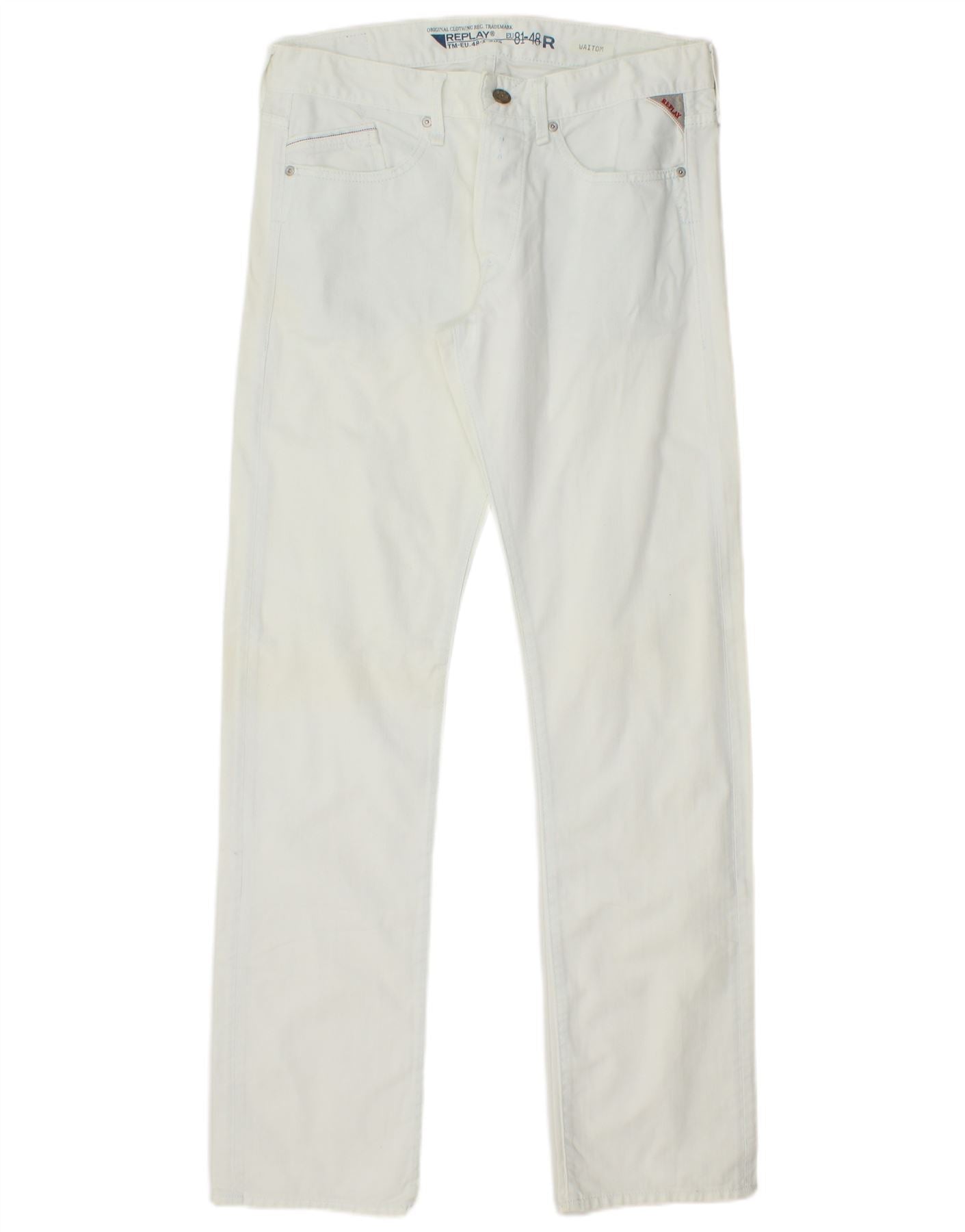 REPLAY Herre Waitom Straight Jeans W32 L34 Hvid Bomuld