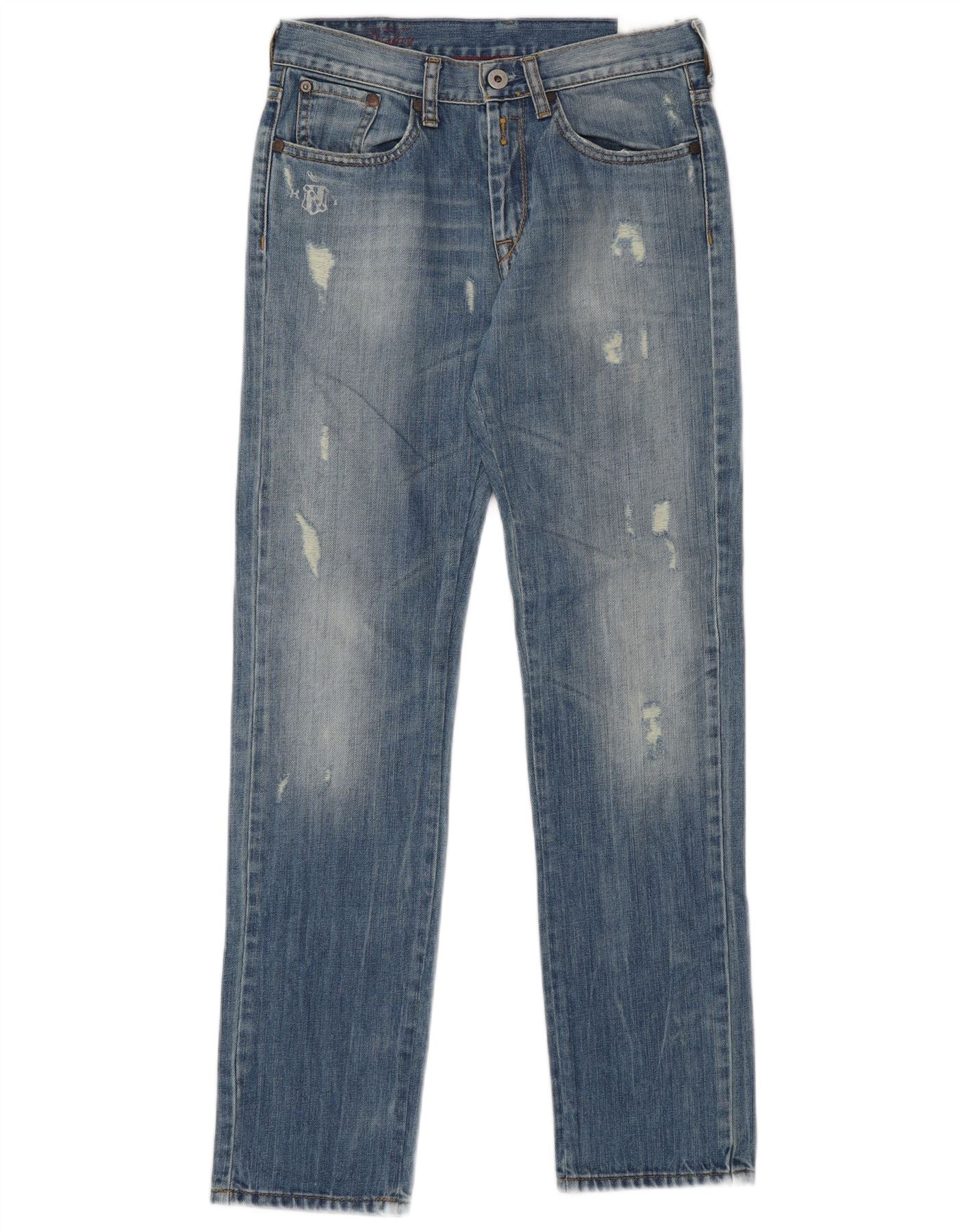 Replay Dame Distressed Straight Jeans W28 L29 Blå Bomuld