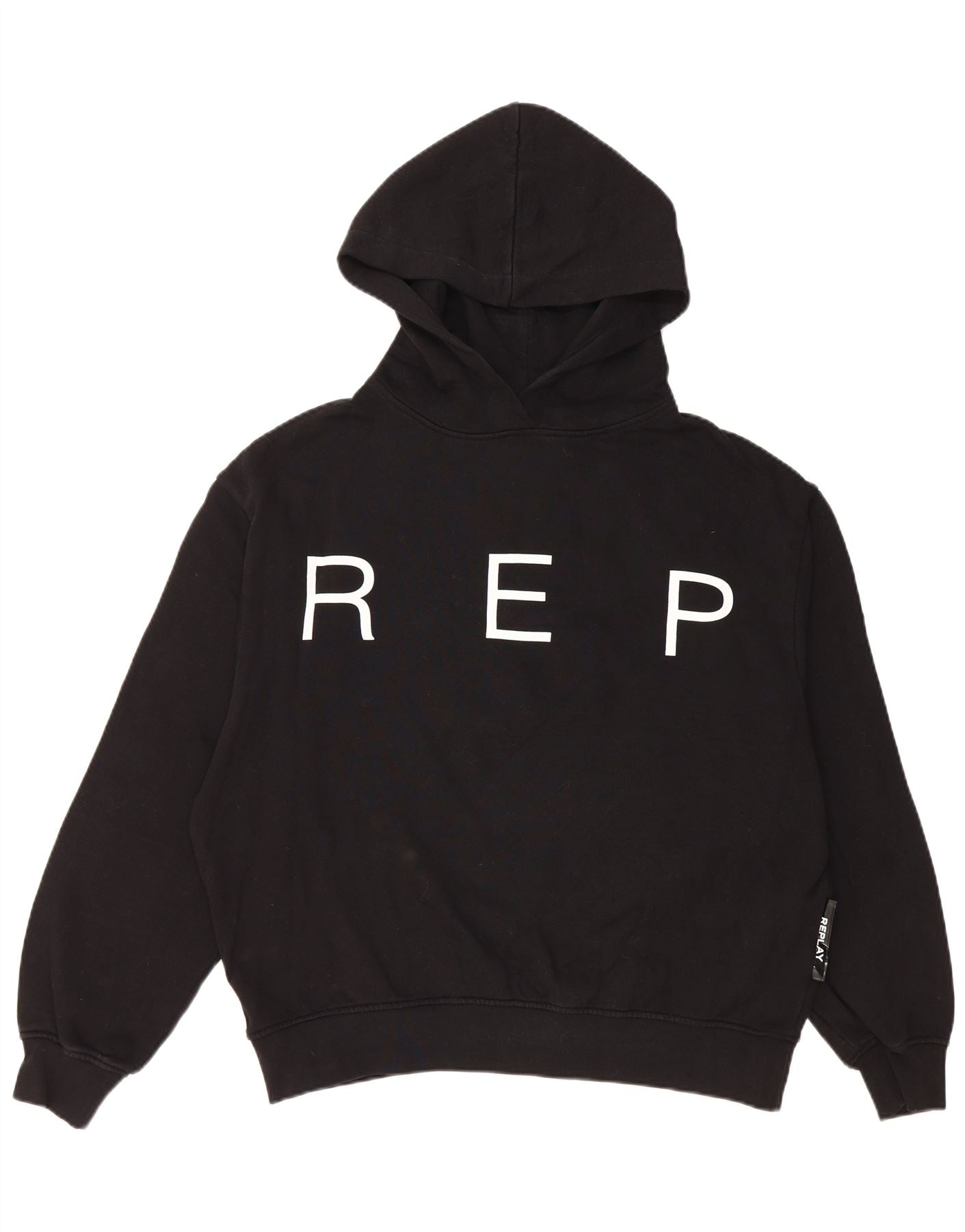 REPLAY Dame Oversized Grafisk Hoodie Jumper UK 10 Small Black Bomuld