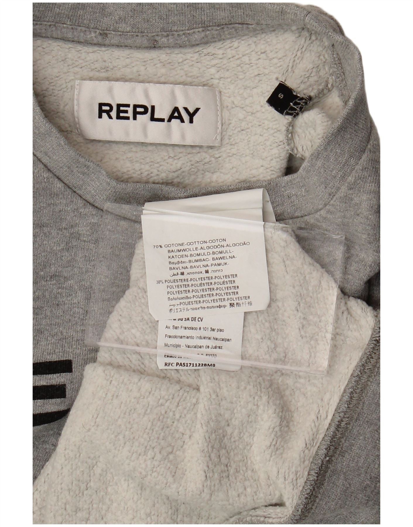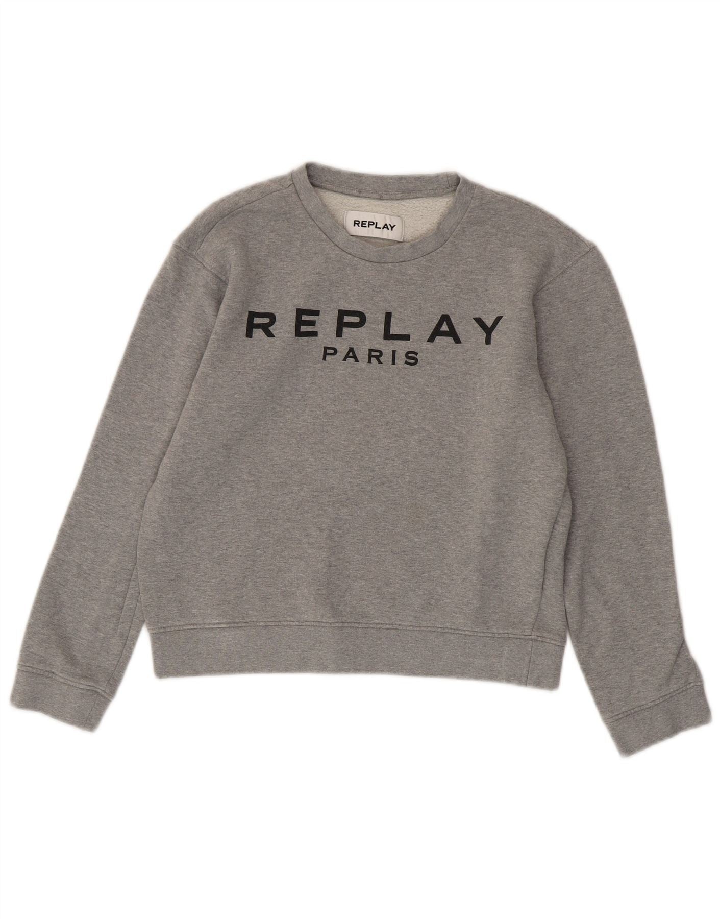 REPLAY Womens Paris Crop Graphic Sweatshirt Jumper UK 10 Small Grey Cotton