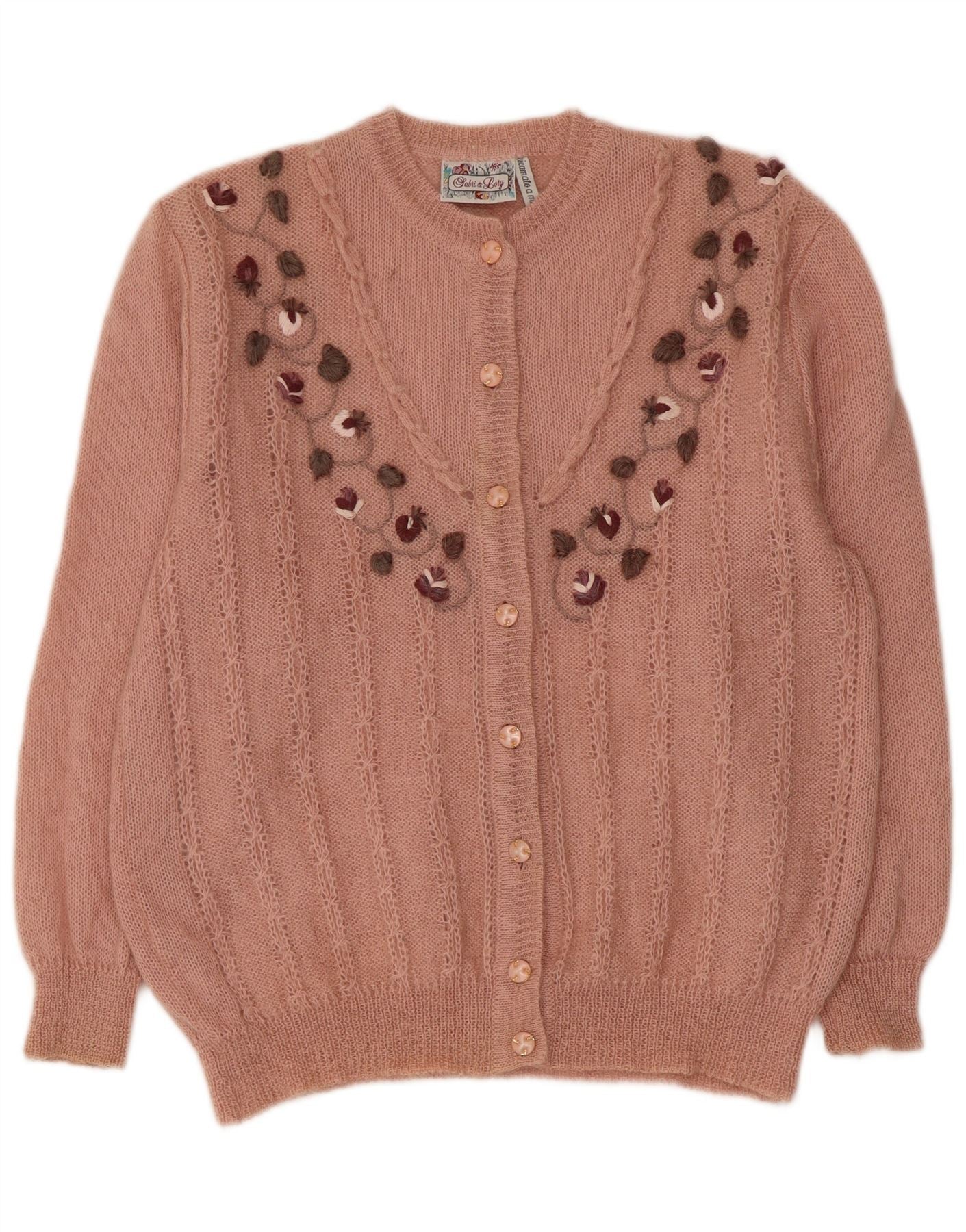 RICAMO A MANO Dame cardigan sweater IT 50 XL Pink Floral Mohair