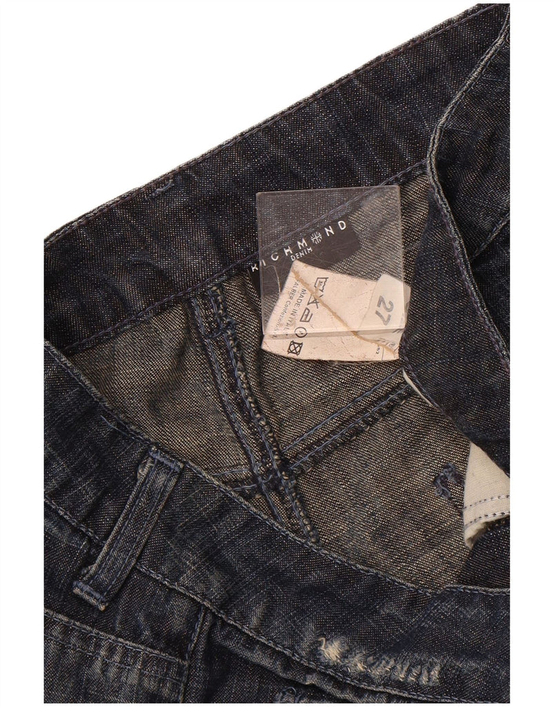 RICHMOND Womens Denim Graphic Bermuda Shorts W27 Small Navy Blue Cotton