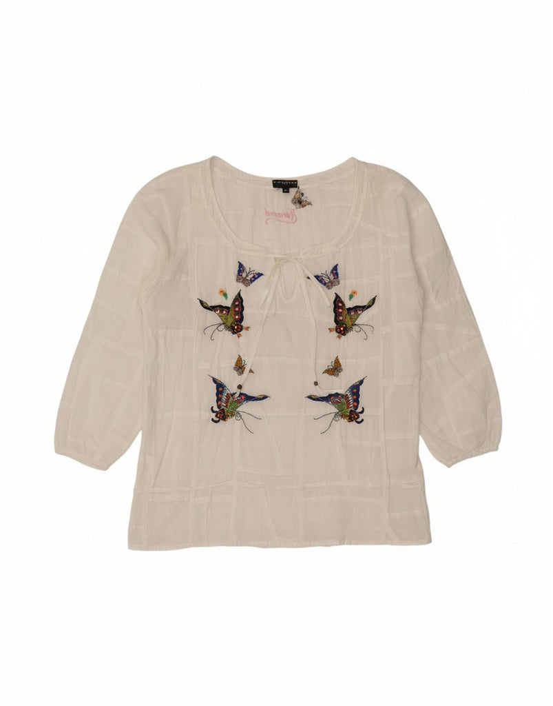 RICHMOND Womens Graphic Blouse Top IT 42 Medium White Butterfly