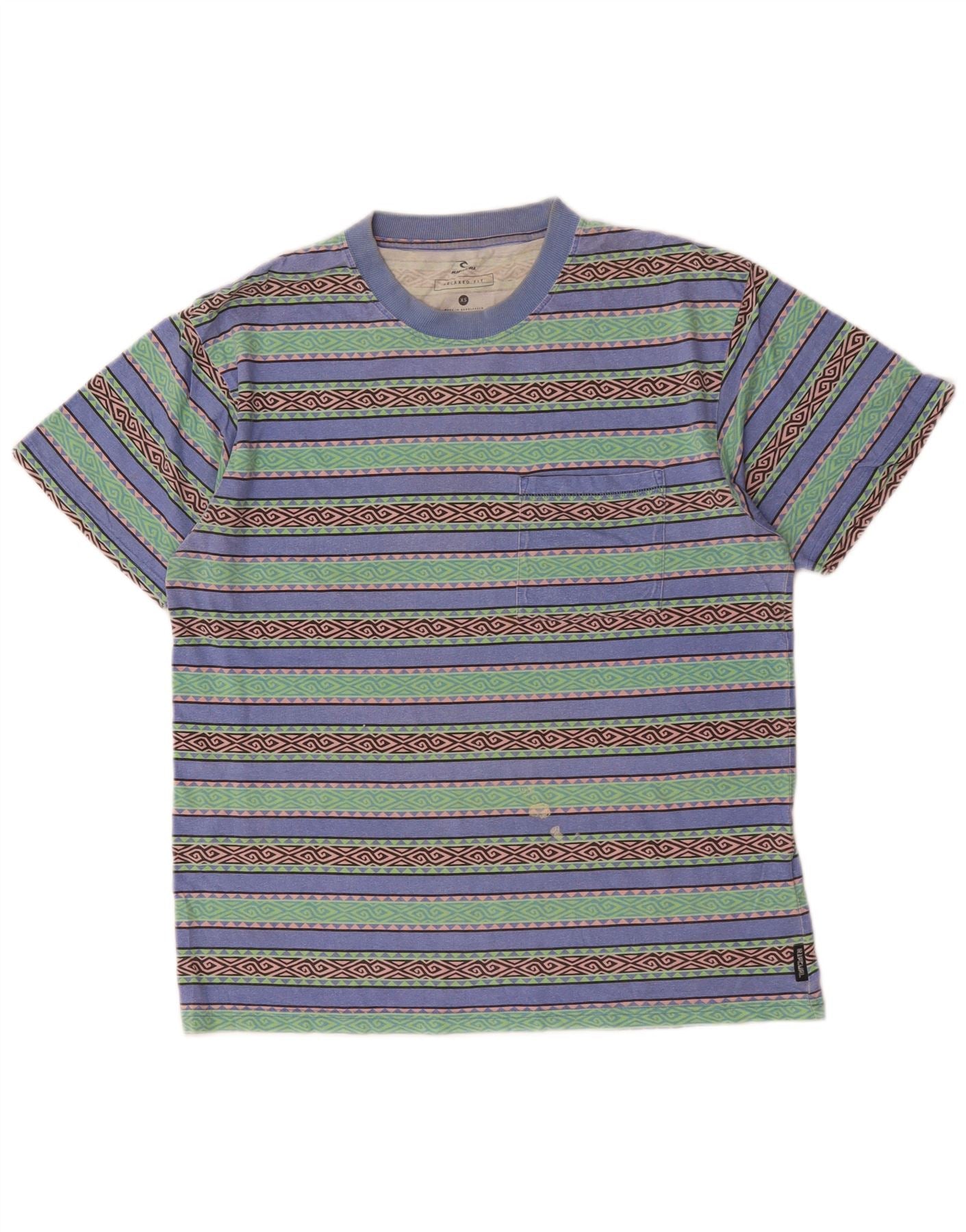 RIP CURL Herre Relaxed Fit T-Shirt Top XS Flerfarvet geometrisk bomuld