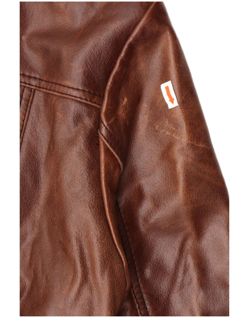 RIVER ISLAND Mens Leather Jacket UK 38 Medium Brown Leather