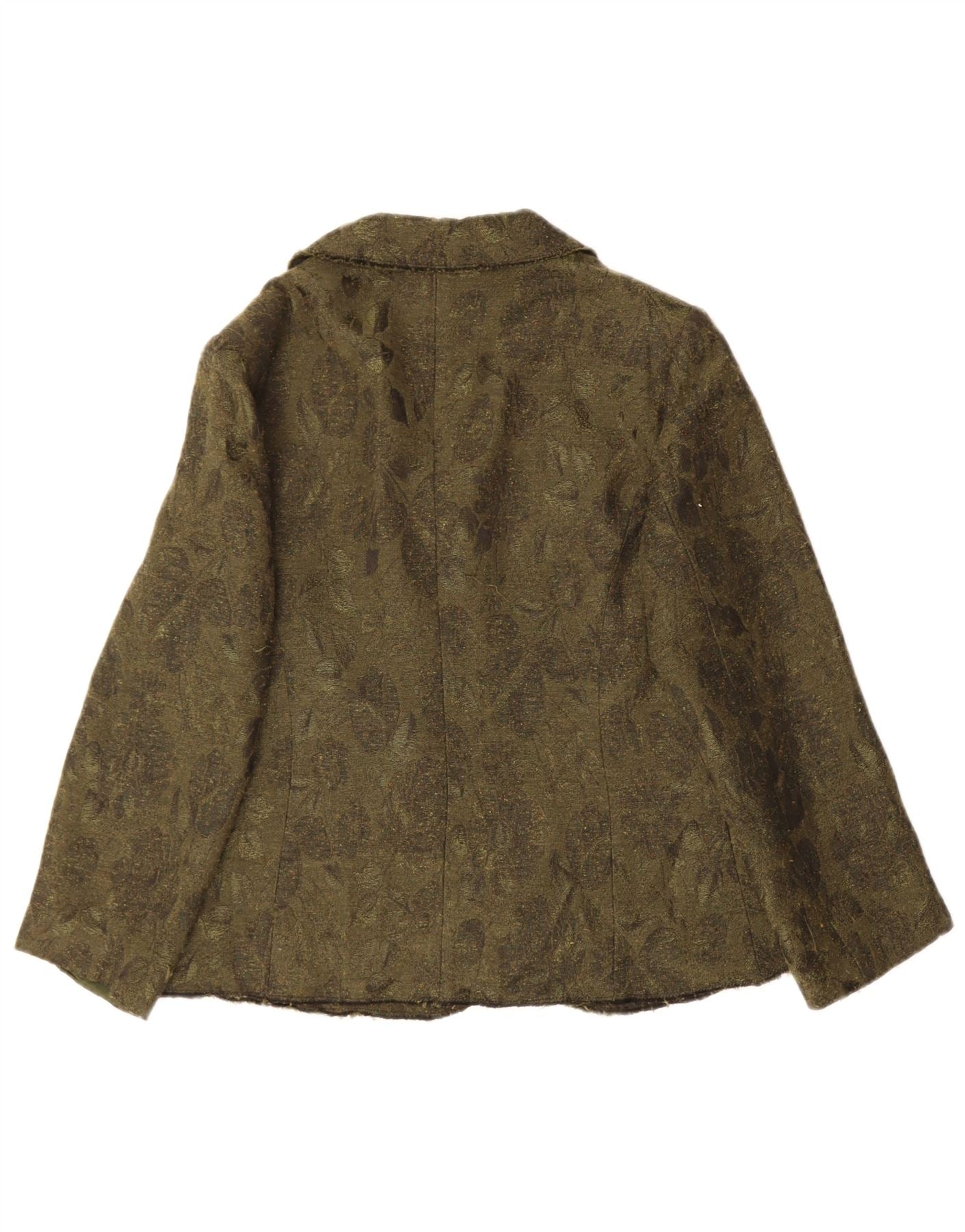ROCCOBAROCCO Womens 3 Button Blazer Jacket US 12 Large Khaki Floral