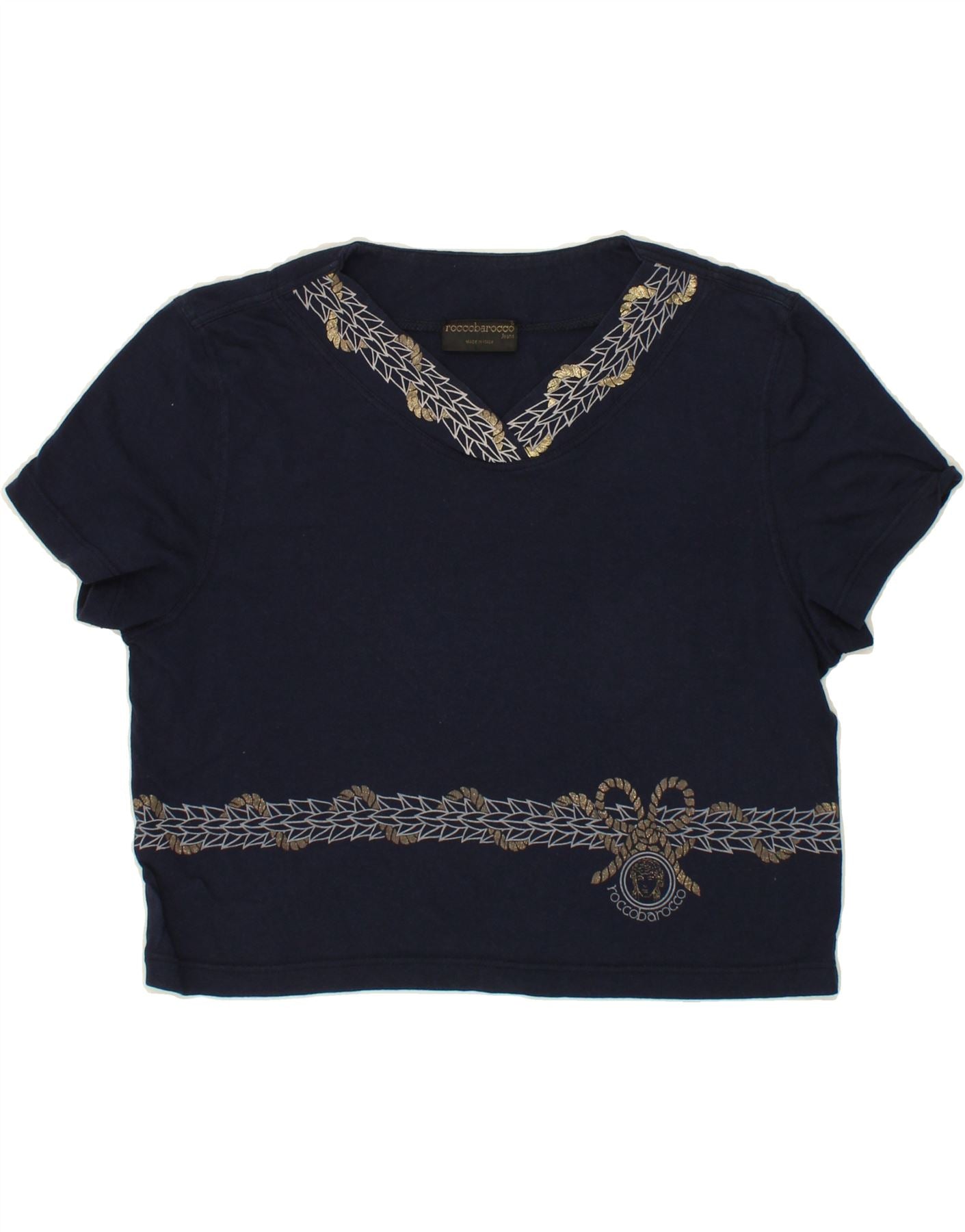 ROCCOBAROCCO Womens Abstract Pattern T-Shirt Top UK 10 Small Navy Blue
