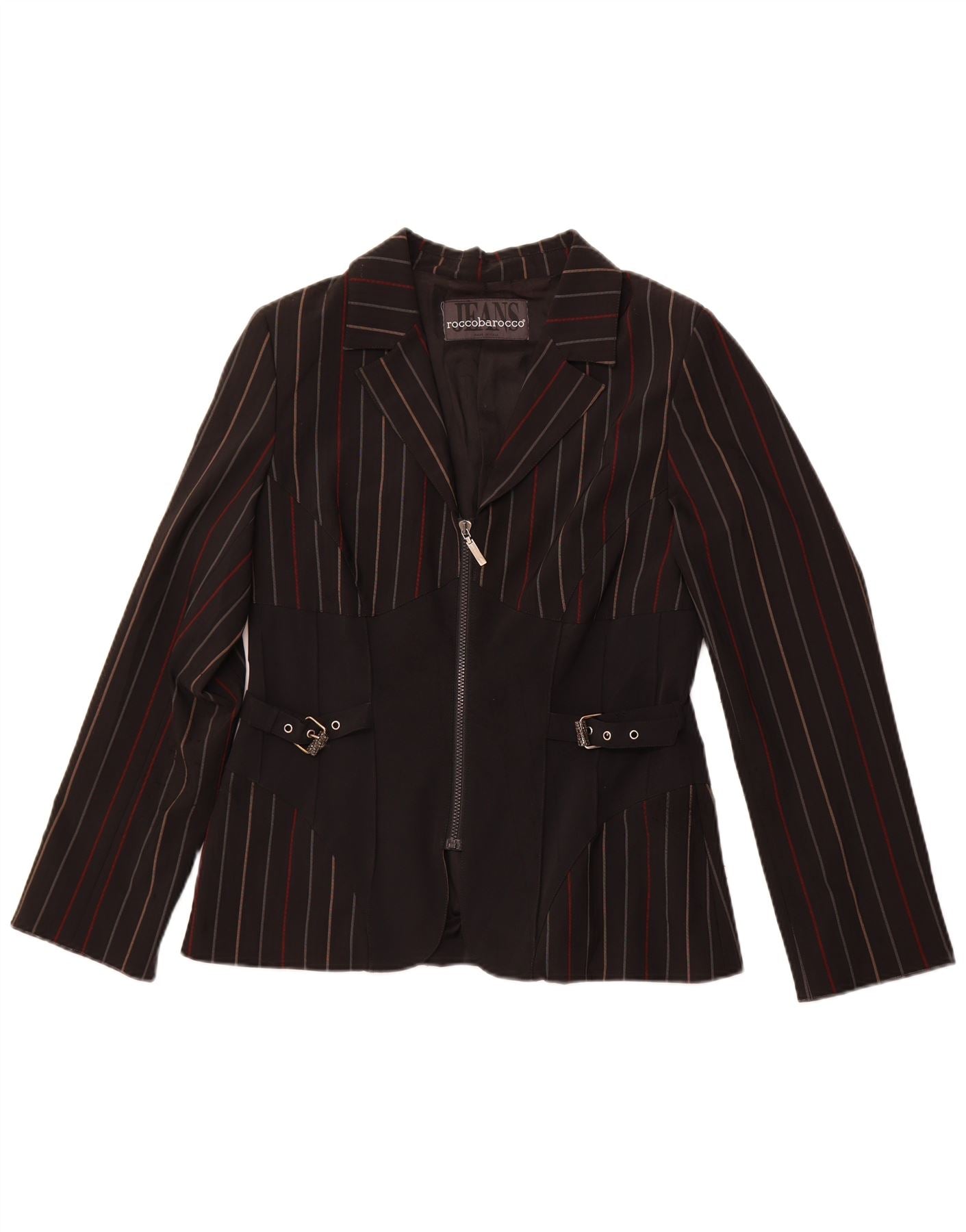 ROCCOBAROCCO Womens Blazer Jacket EU 48 2XL Black Pinstripe Polyester