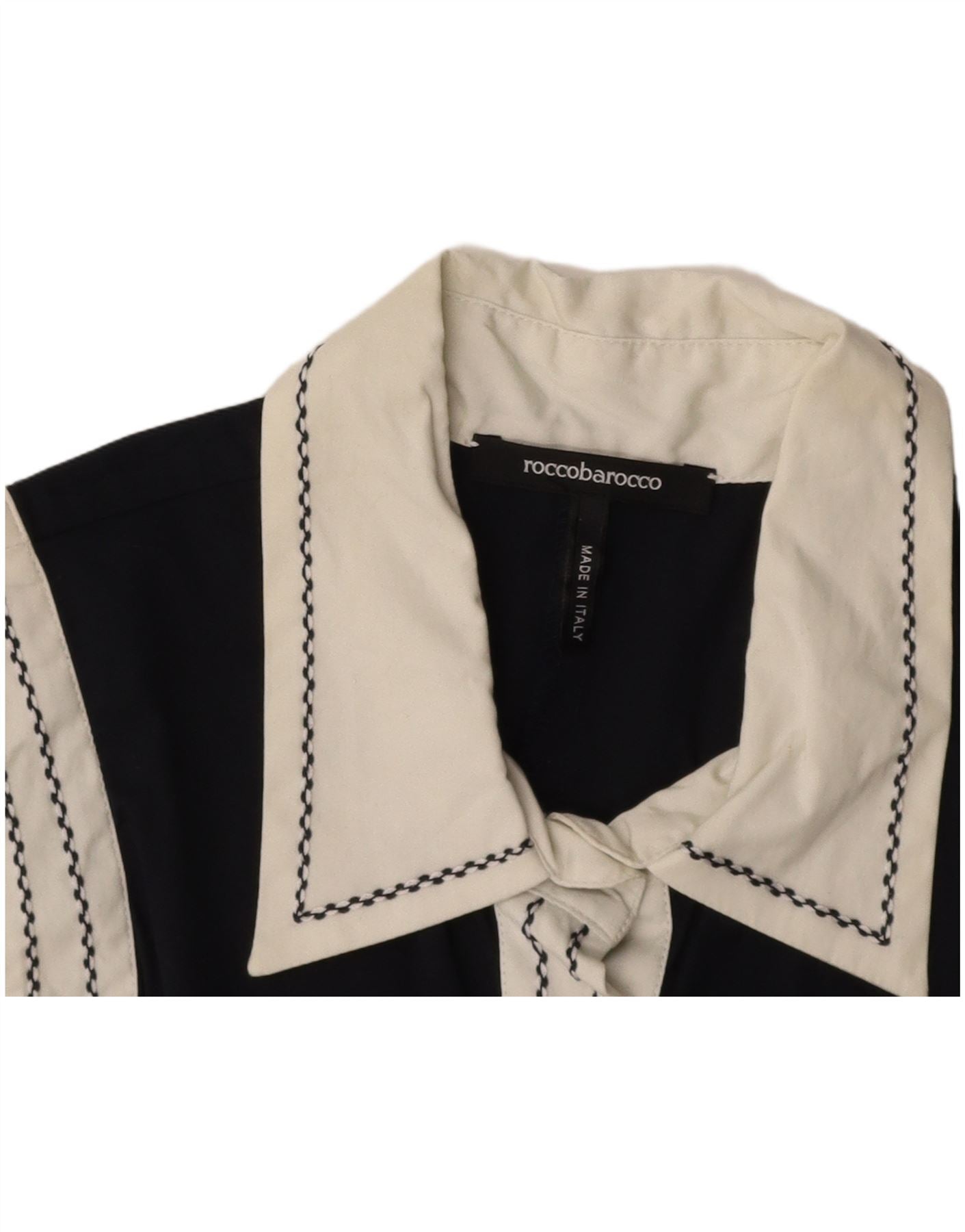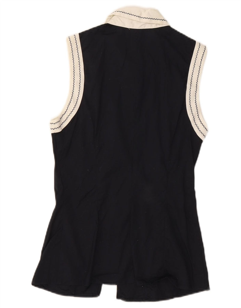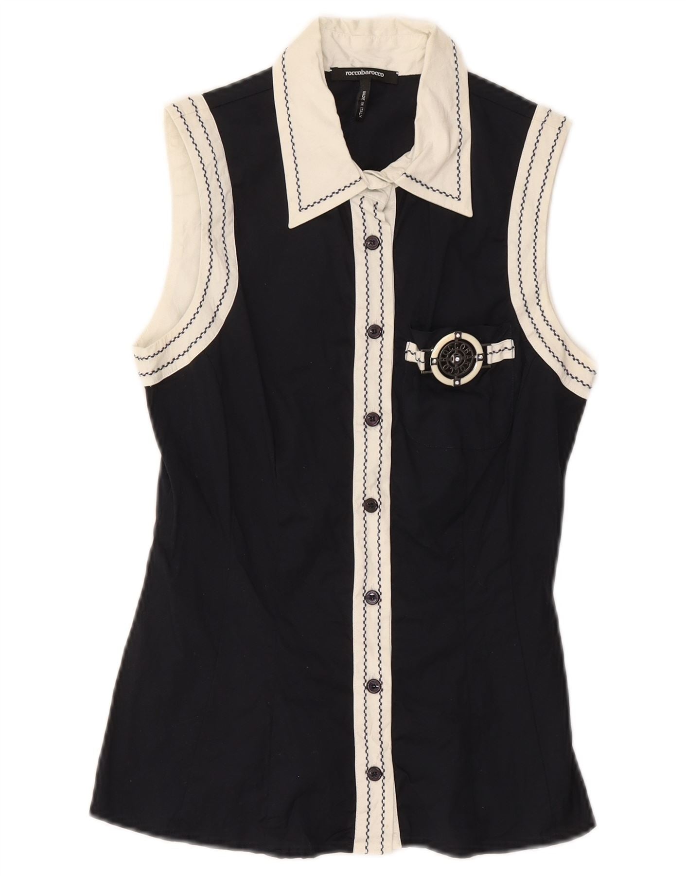 ROCCOBAROCCO Womens Sleeveless Shirt UK 10 Small Navy Blue Colourblock