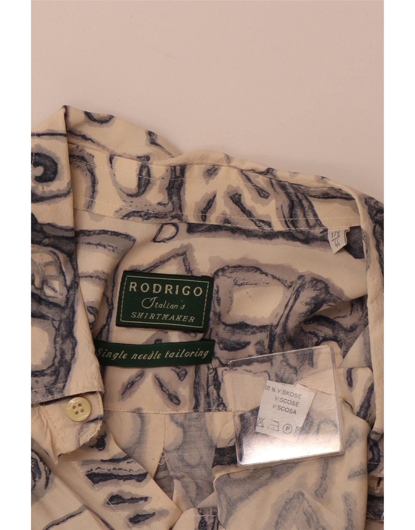 RODRIGO Kortærmet Herreskjorte Størrelse 17 1/2 44 XL Hvid Geometrisk Viscose