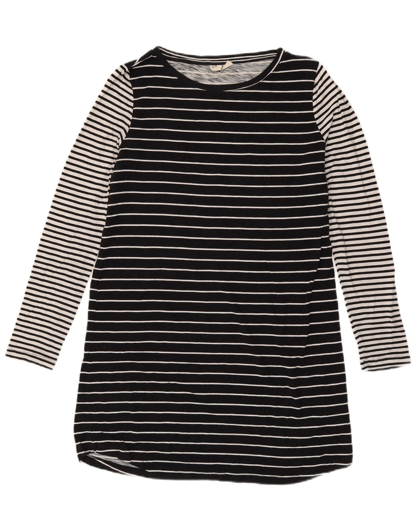 Roxy Dame Langærmet T-Shirt Kjole UK 14 Medium Sort Stribet Bomuld