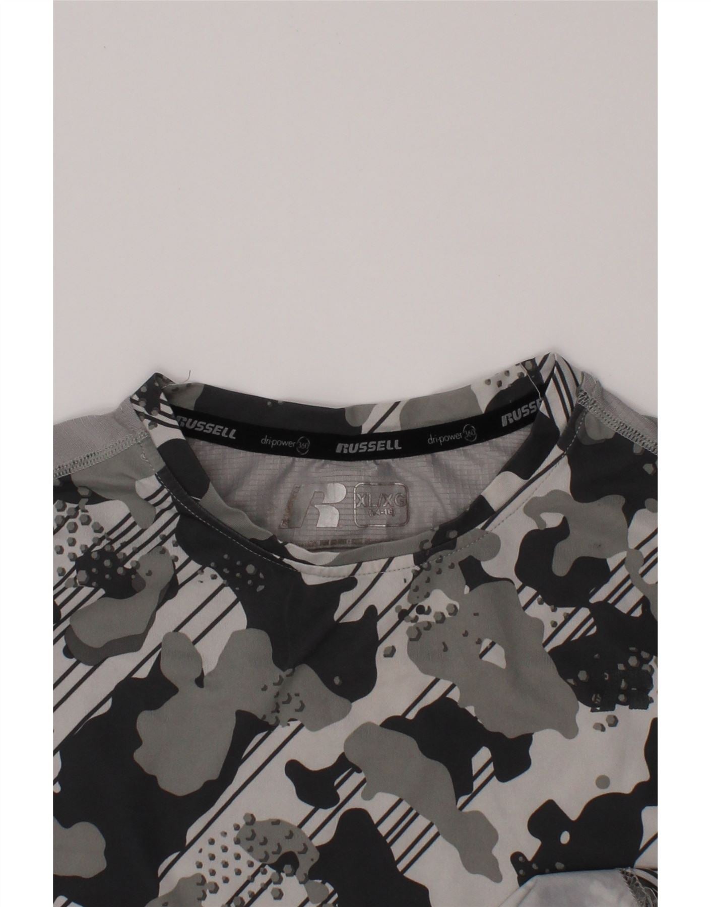 RUSSELL ATHLETIC Drenge Dri-Power T-Shirt Top 14-15 år XL Grå Camouflage